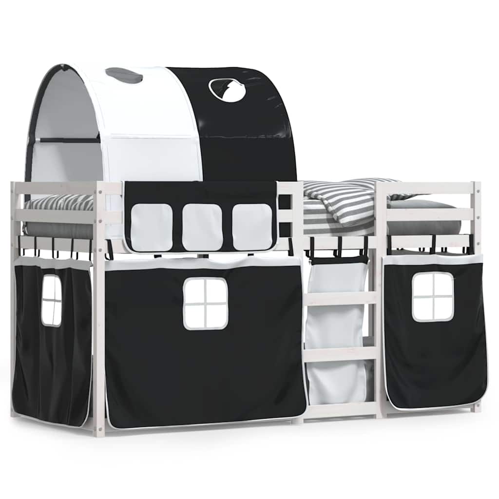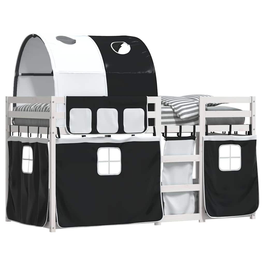 Etagenbett Kinderbett Hochbett mit Vorhängen Weiß Schwarz 90x200cm Kiefer vidaXL