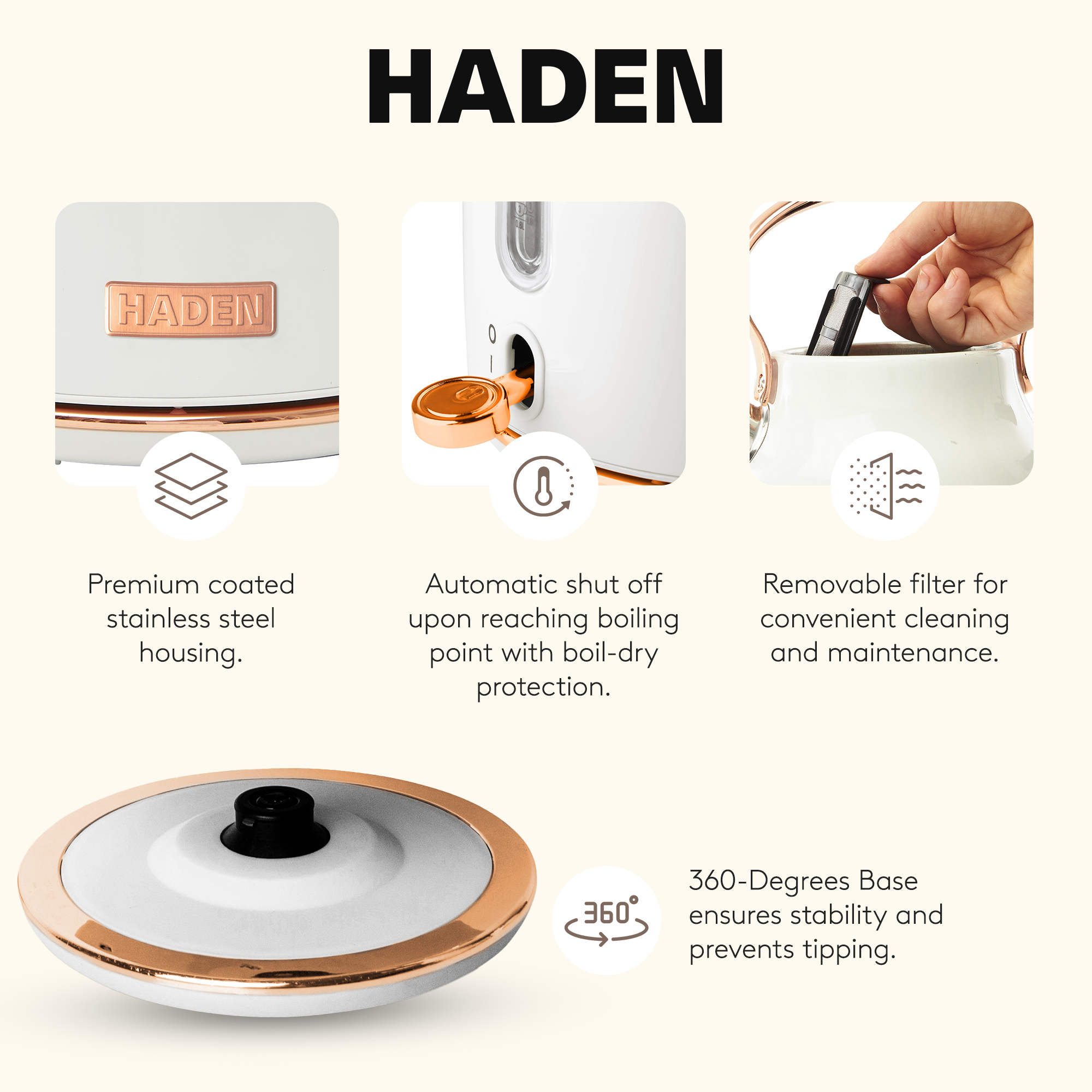 The HADEN Toaster and Kettle embody the fusion of innovation and modern functionality. Add these appliances to your kitchen necessities and take your morning to the next level.
