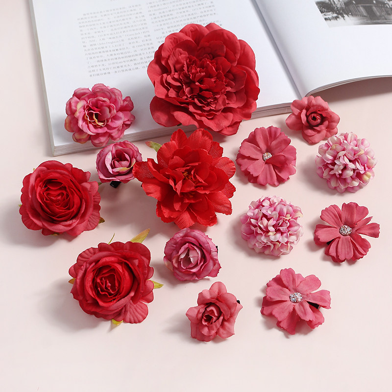 14x Simulation Fake Flowers Hairpin Material DIY Silk Flower Headdress Accessory