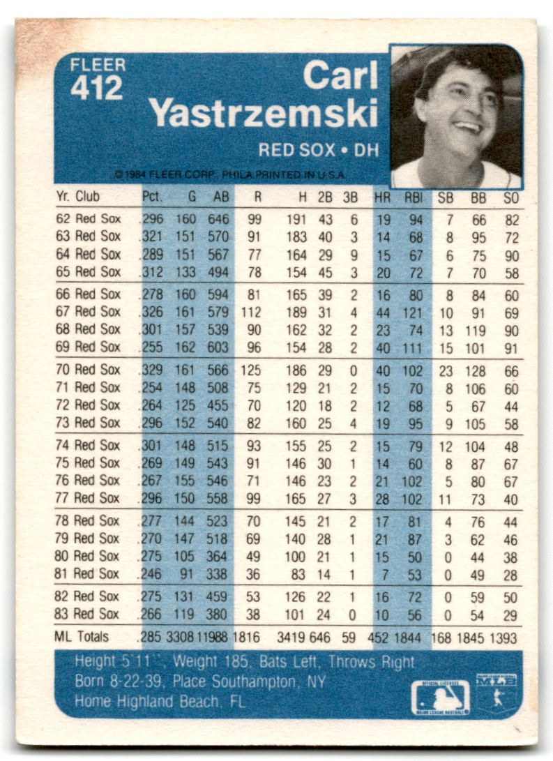 | 1984 Fleer 412 Carl Yastrzemski |