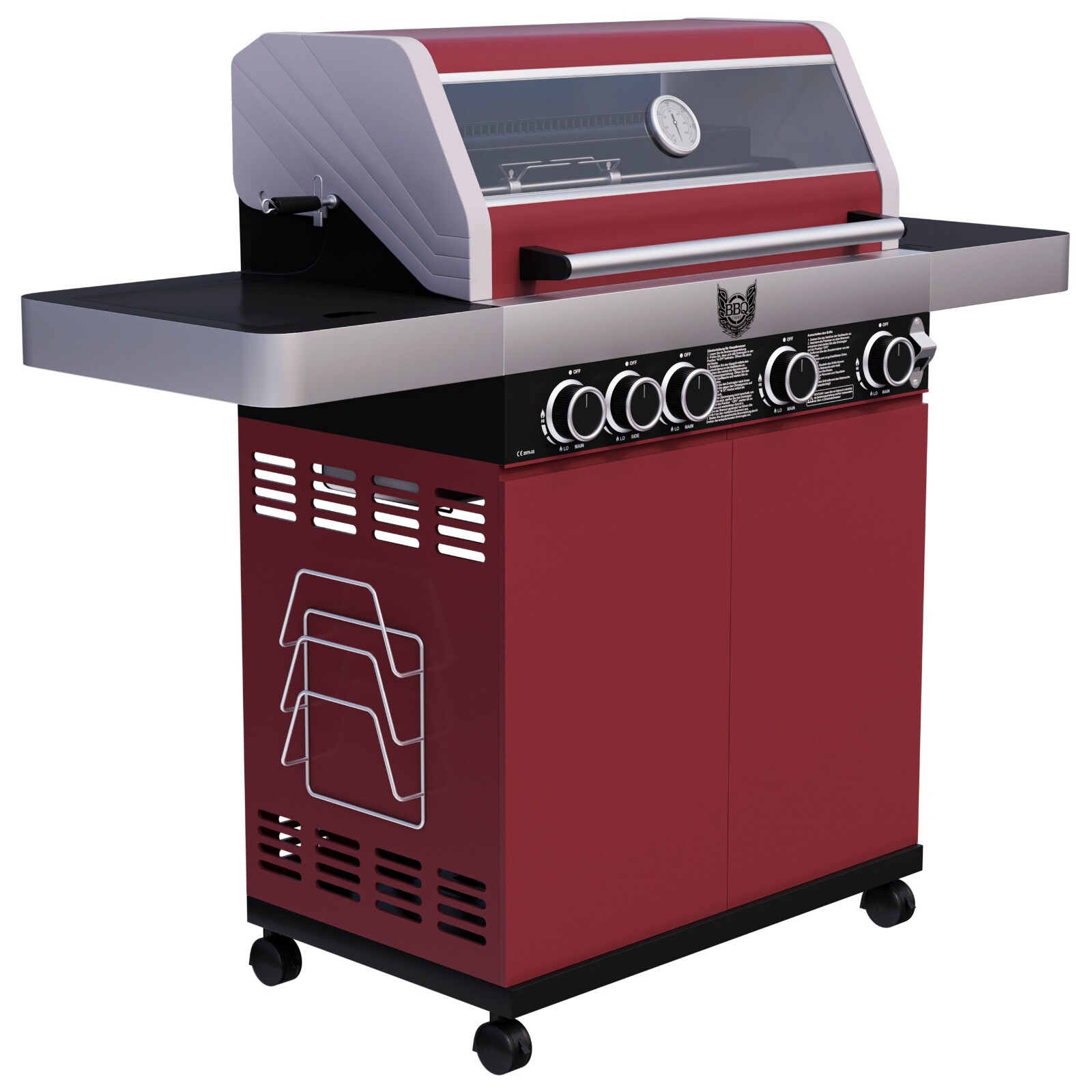 Die vier Hauptbrenner liefern eine Gesamtleistung von 14 kW (4 x 3,5kW). Eine hohe Brennerleistung ermöglicht das einfache Ausbrennen des Garraums zur Reinigung und sorgt für eine schnelle Aufheizung der Grillroste. Die Hauptbrenner sind zum Schutz vor herabtropfendem Öl und Fleischsaft mit Flammblechen versehen.