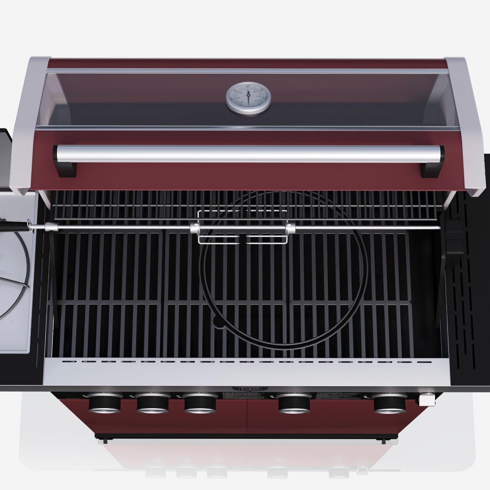 Damit der Grill nicht zu schnell auskühlt und die Hitze im Garraum gleichmäßig bleibt, ist die Haube doppelwandig ausgeführt. Ein Sichtfenster aus Glas in der Haube lässt den Blick auf das Grillgut zu, ohne die Haube öffnen zu müssen.