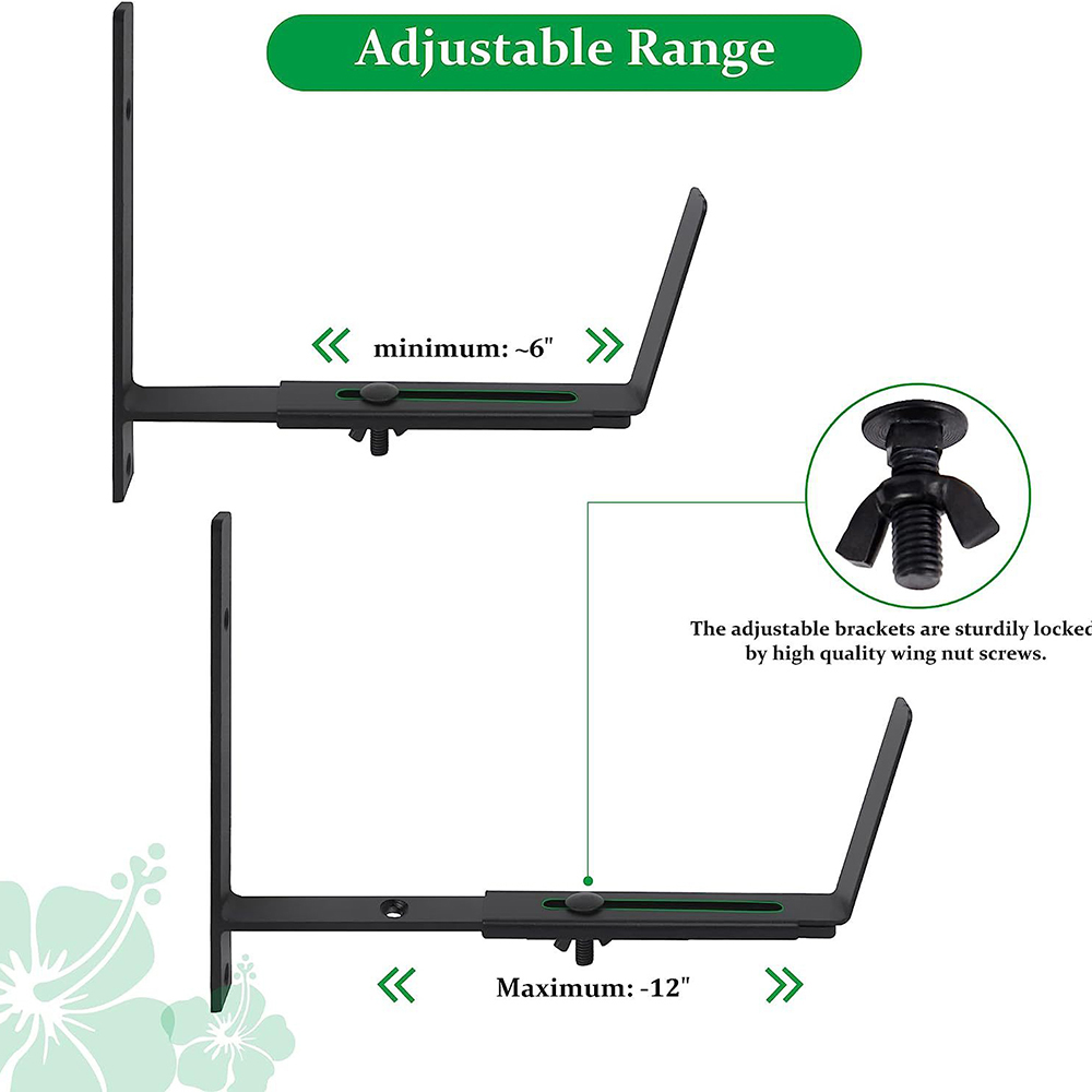 • Features:  100% Brand New.  Stretchable iron rods, screw design, scalable movement and stretching, more convenient placement, and more suitable for a wider range of scenarios  Rust resistant hooks, coated with anti rust paint and oil treatment on the surface, are not afraid of rusting even in damp areas such as the bathroom, making use more reassuring  Anti shaking support plate to prevent shaking and stabilize the flowerpot  You can mount it easily on wall, deck, porch, fence, even in modern living room, bedroom, garden, yard, garage or balcony.  Delicate design adds a touch of natural style to your living space and garden.
