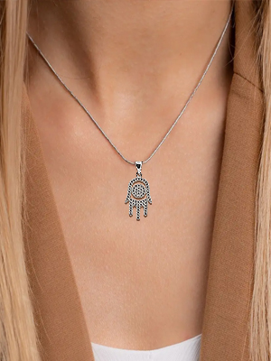 Hamsa Evil Eye CZ Necklace in Sterling Silver, Jewish Judaica Jewelry, Kabbalah
