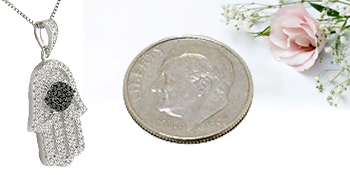 Hamsa Black Evil Eye CZ Necklace in Sterling Silver, Judaica Jewelry, Kabbalah