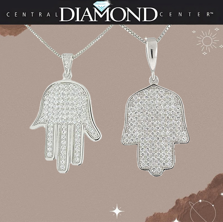 Hamsa CZ Necklace Sterling Silver & Pure Brilliance Zirconia w/ 22in Adj Chain