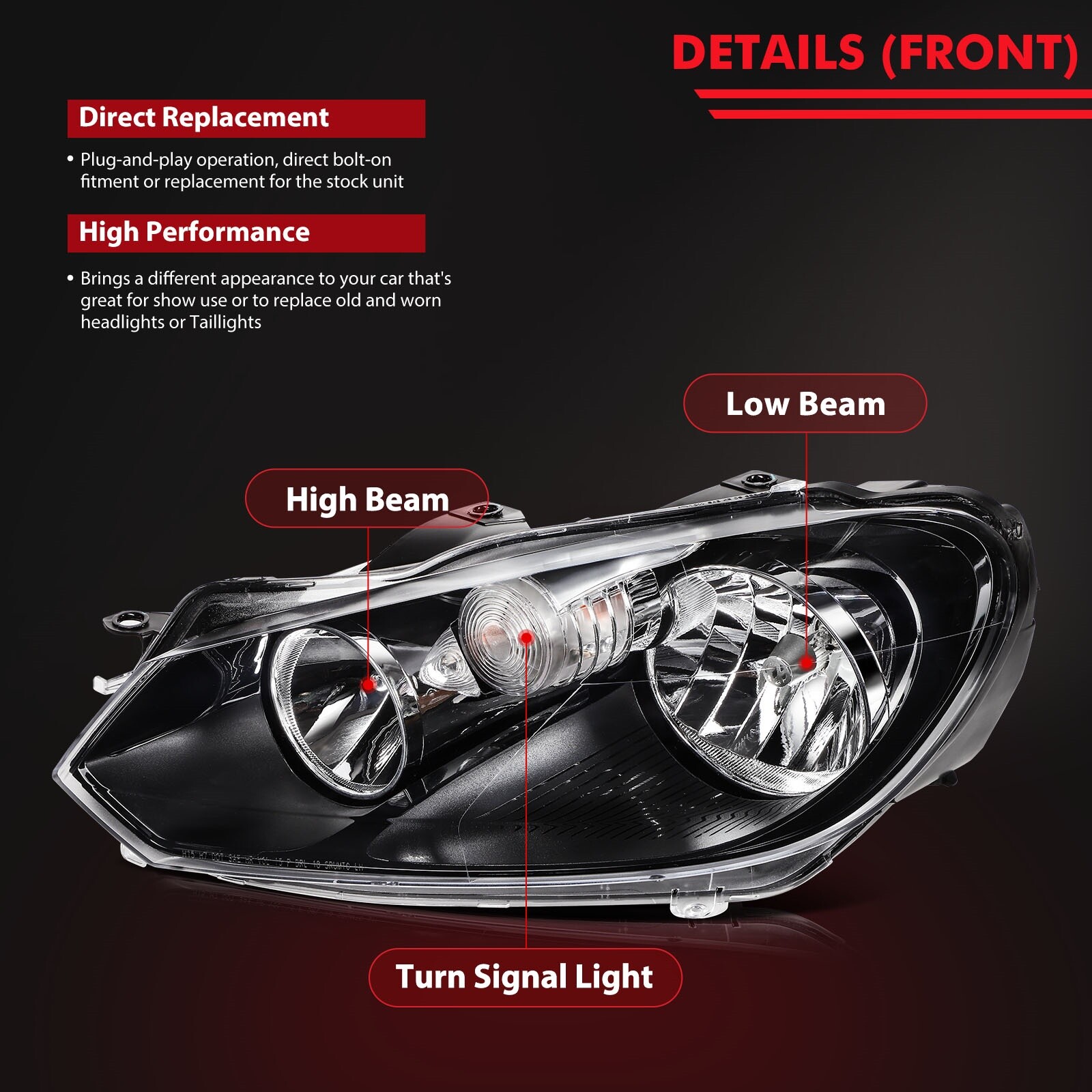 Headlights Assembly For 2010-2014 Volkswagen GTI Golf Jetta Sportwagen(MK6)