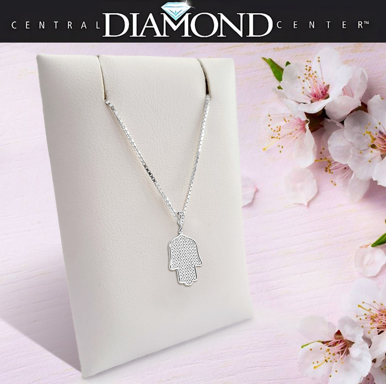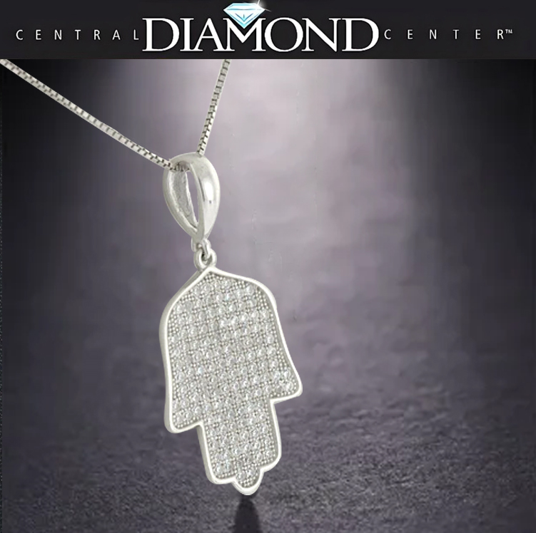 Hamsa CZ Necklace Sterling Silver & Pure Brilliance Zirconia w/ 22in Adj Chain