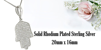 in Rhodium Plated Sterling Silver. The pendant measures 12 x 19mm and comes with a .6mm Sterling