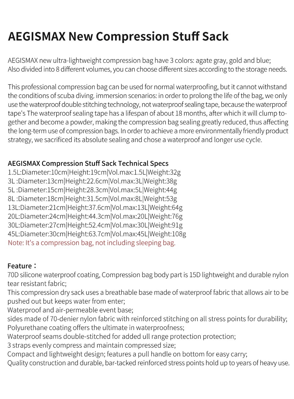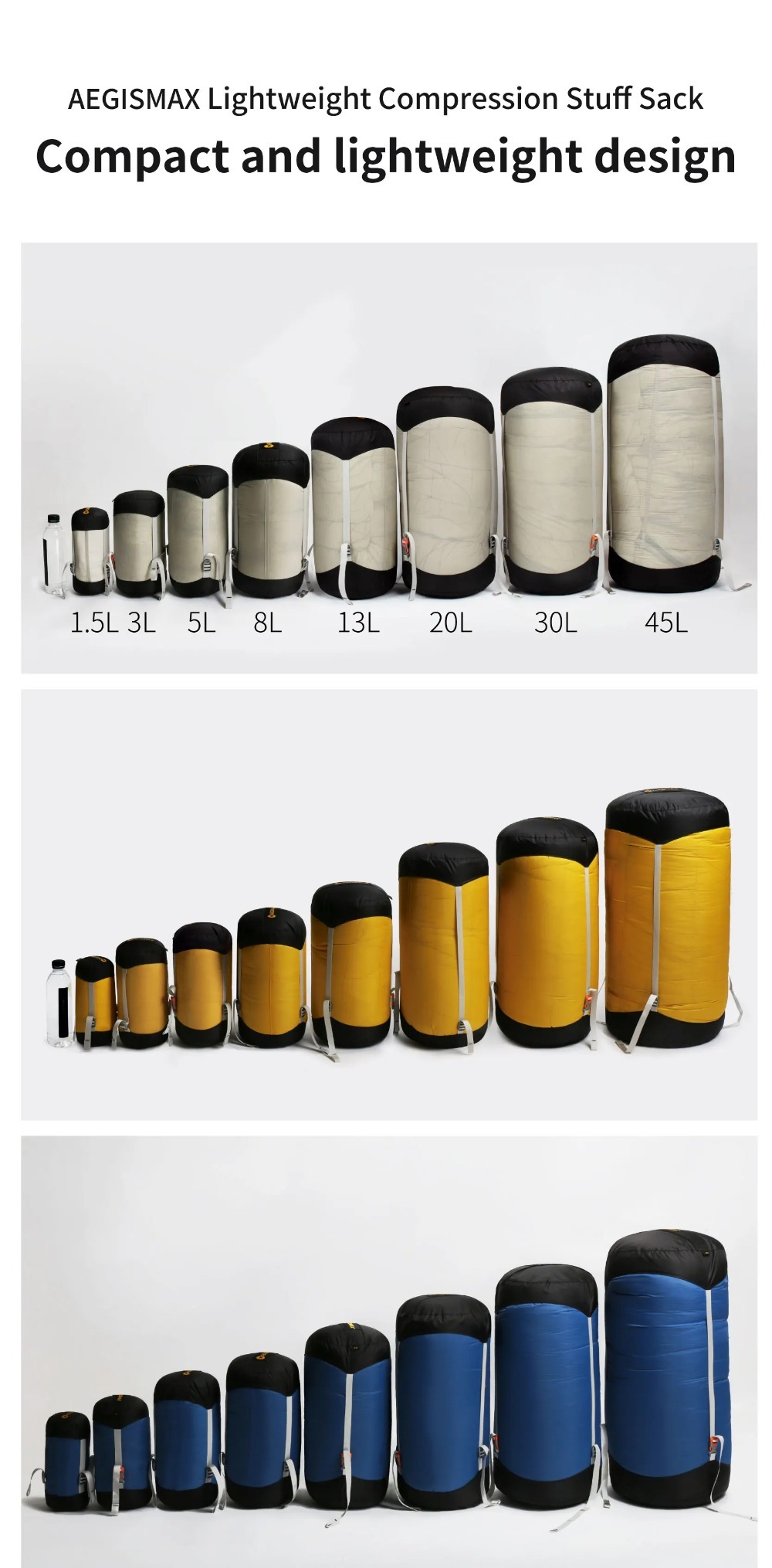 AEGISMAX 1.5L-45L 15D Ultralight Compression Sleeping Bag Waterproof Stuff Sack for Down Jackets Camping Supplies Storage Bag