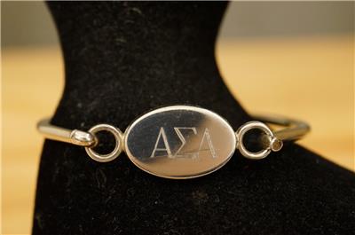 Vintage Sorority Jewelry Alpha Sigma Alpha Sterling Silver Hinge Bangle Bracelet. Hook top opens for easy wear. Inner diameter 2-1/8" - designed for small framed clients. Engraved on the top. No smoke or pet odors. Gift quality.