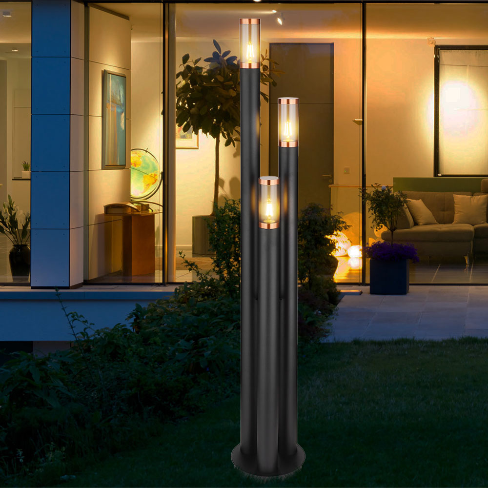 Stehlampe Standleuchte Außenlampe Hofleuchte 3 flammig schwarz kupfer H 170 cm