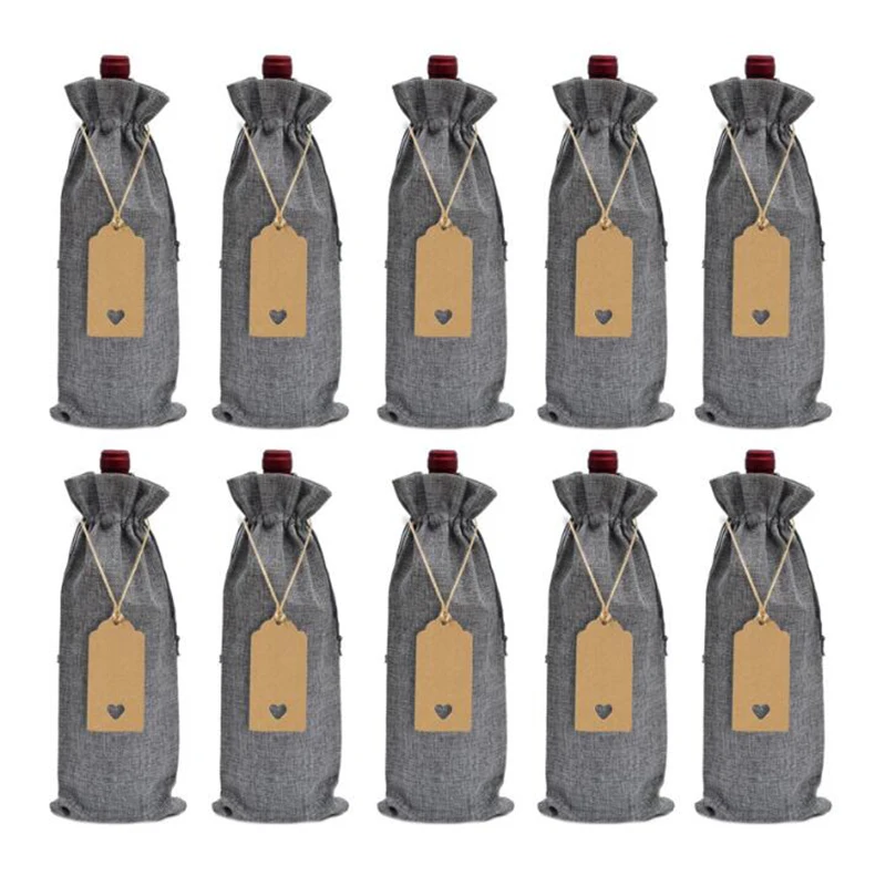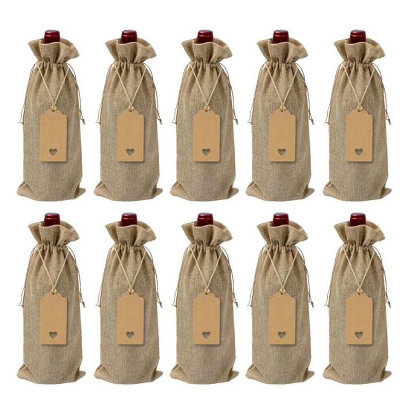 10pcs Burlap Bags With Drawstrings For Drink Bottle Reusable Gift Bags With Tags