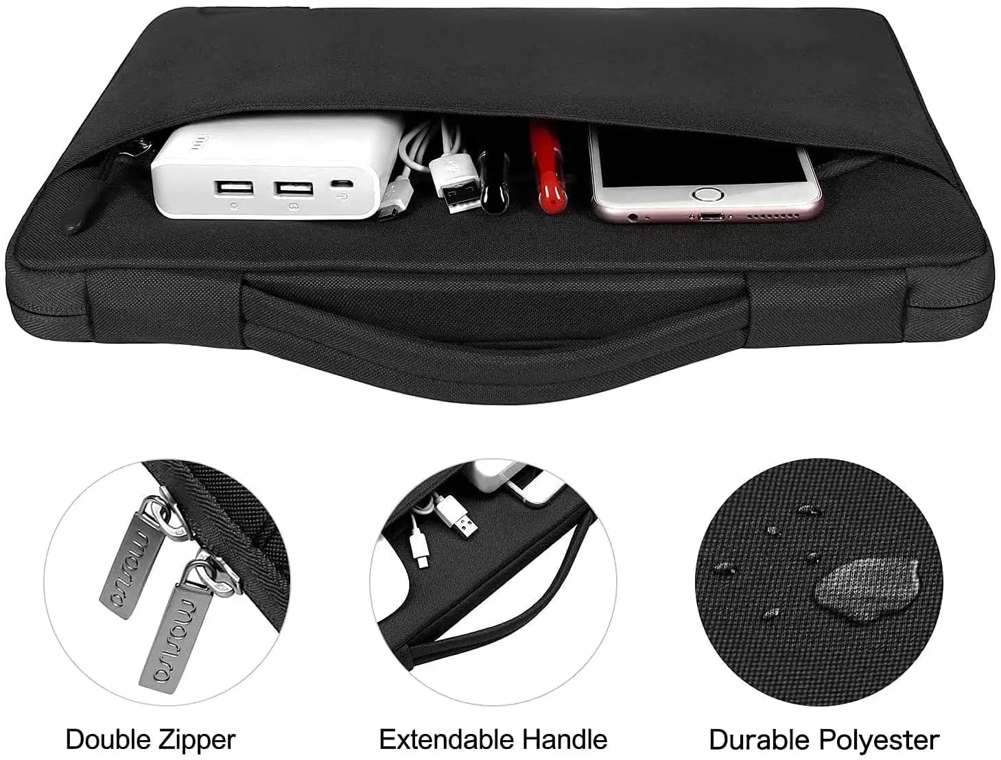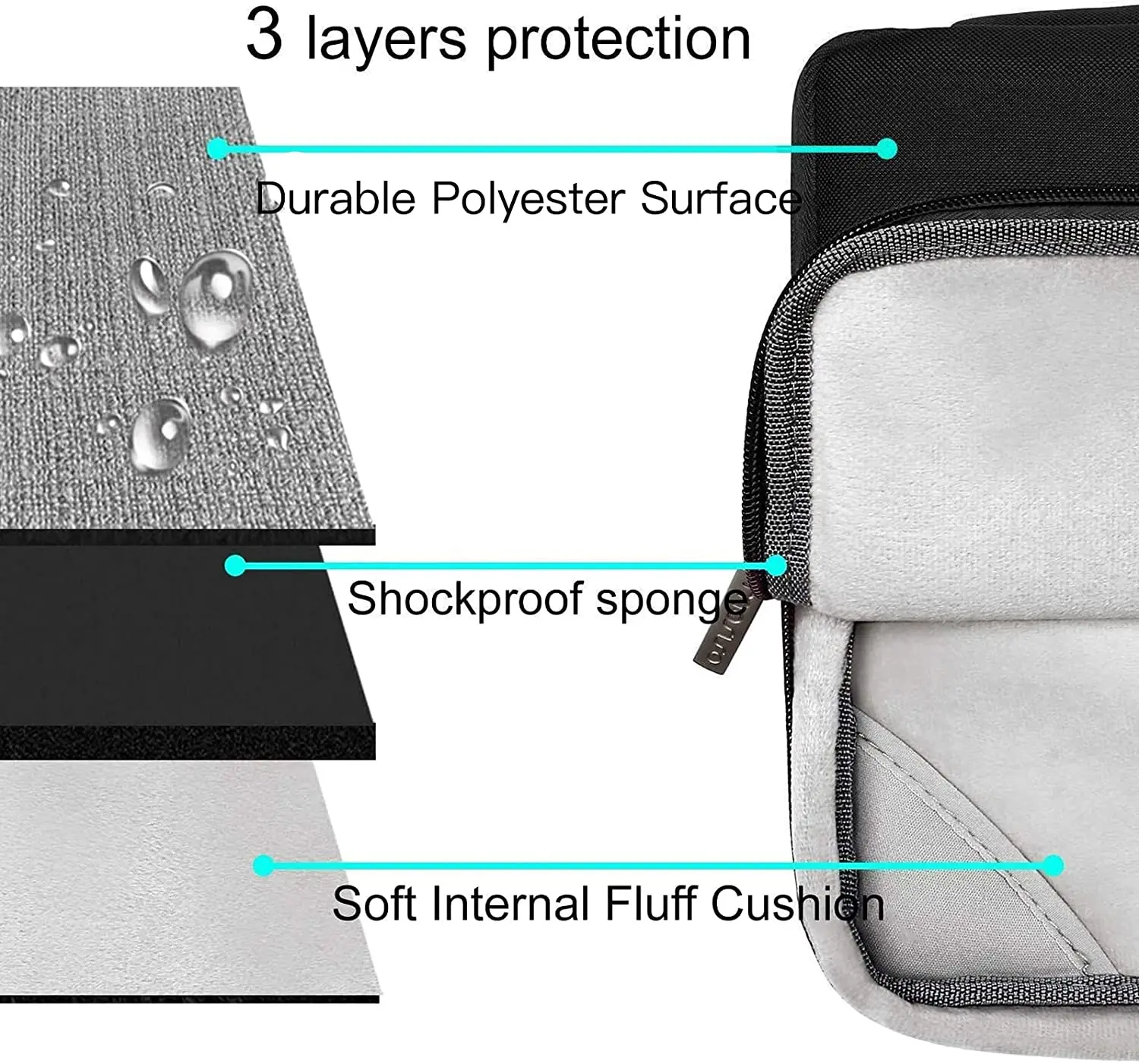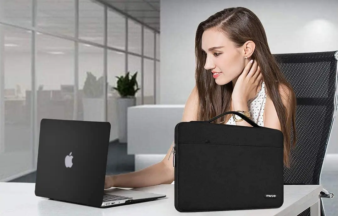 The 360 degree protective shockproof laptop sleeve with handle carrying bag is made of polyester material, protect your laptop against accidental spills. Slim and lightweight, does not bulk your device up and can easily slide into your briefcase, backpack or other bag. Ideal for business, school or travel.