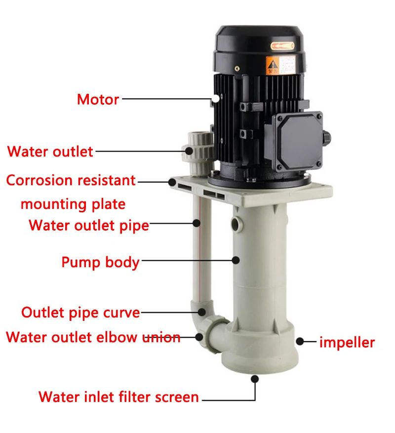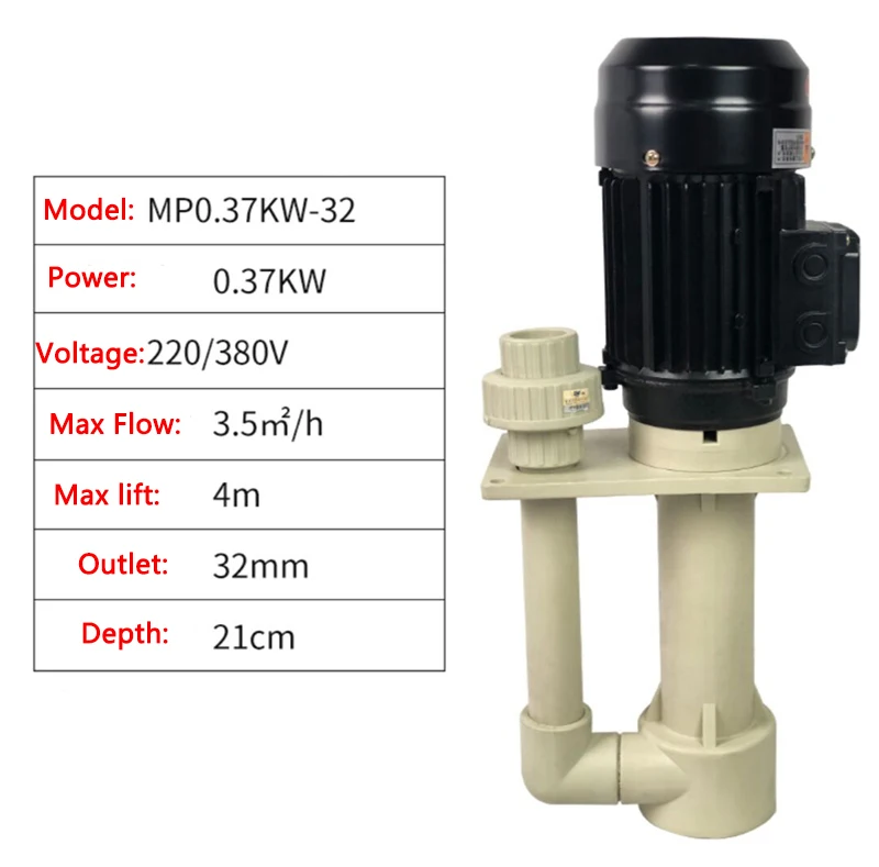 Plastic Chemical pump Vertical acid and alkali resistant Submerged pump Anti-corrosion Desulfurization pump Circulating pump 370W 220v 380v(optional) 1. Acid and alkali resistance 2. Corrosion resistance and durability 3. All copper motor 4. Good sealing 5. Strong wear resistance 6. Idling without water