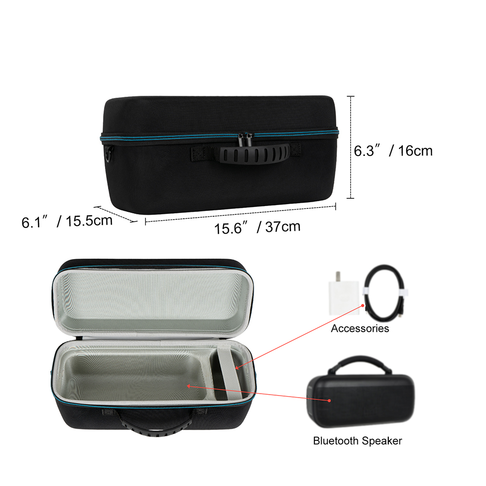 5.Comfortable handheld, more comfortable grip, shoulder strap design only makes your travel easier, convenient and sturdy design and universal compatibility make it ideal for protecting and transporting speakers and their accessories in any environment.