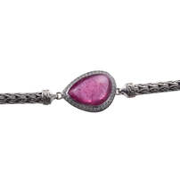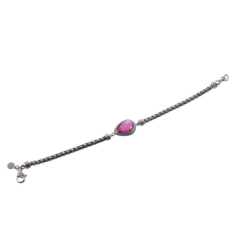Sterling silver Classic Chain collection bracelet by John Hardy, set with 0.15ctw in diamonds and cabochon rubelite. Comes with pouch. Retail Value $2600.