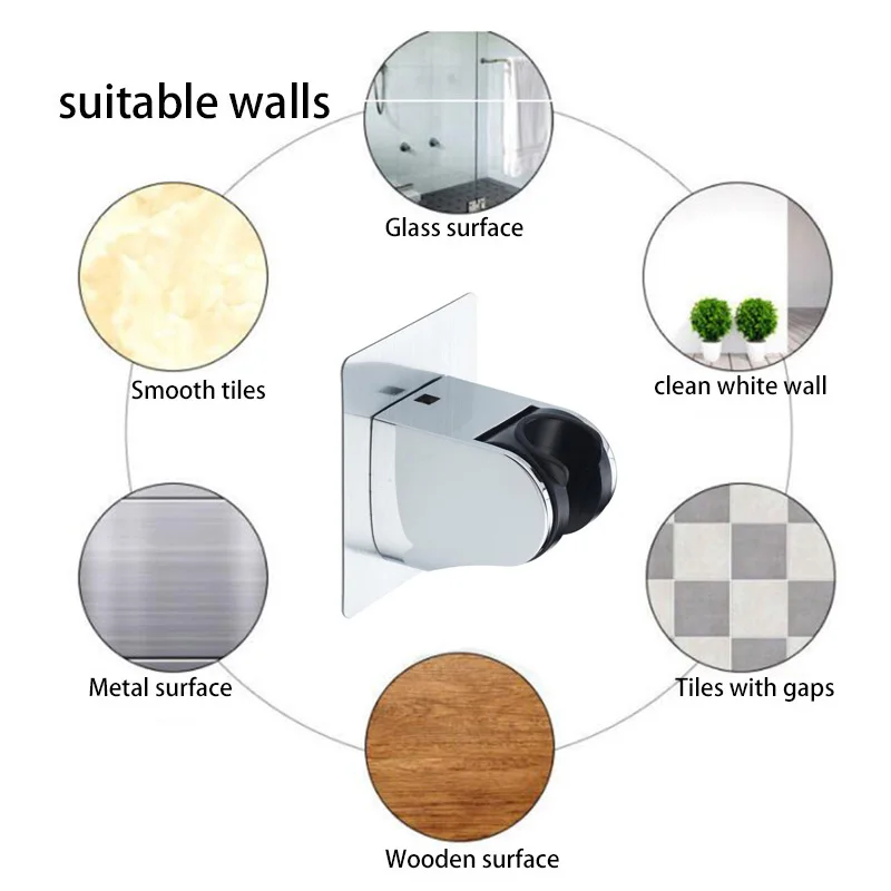 Adjustable Polished Self-adhesive Handheld Suction Up Drill-free Shower Head Holder Showerhead Rack Punch-free Adjustable Useful