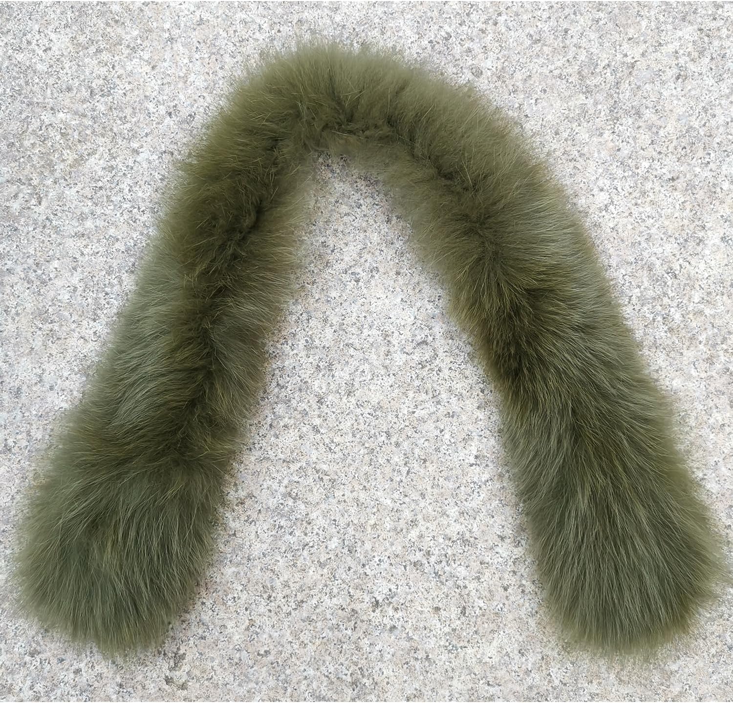 -Each of our furs skins is made of winter fur skins to ensure a high density of fur. They are fluffy, dense, soft, comfortable, warm and shiny. -We only use the fur on the back to make the collar to ensure the quality of each collar. - We only use the whole fur skins to make the collar. We never use the patchwork fur. We only focus on doing the best scarf! Detials: Item type:100% Real natural fox fur scarf collar Length:70cm/75cm Surface Width:10cm Color: Army green Gender: Women/Men