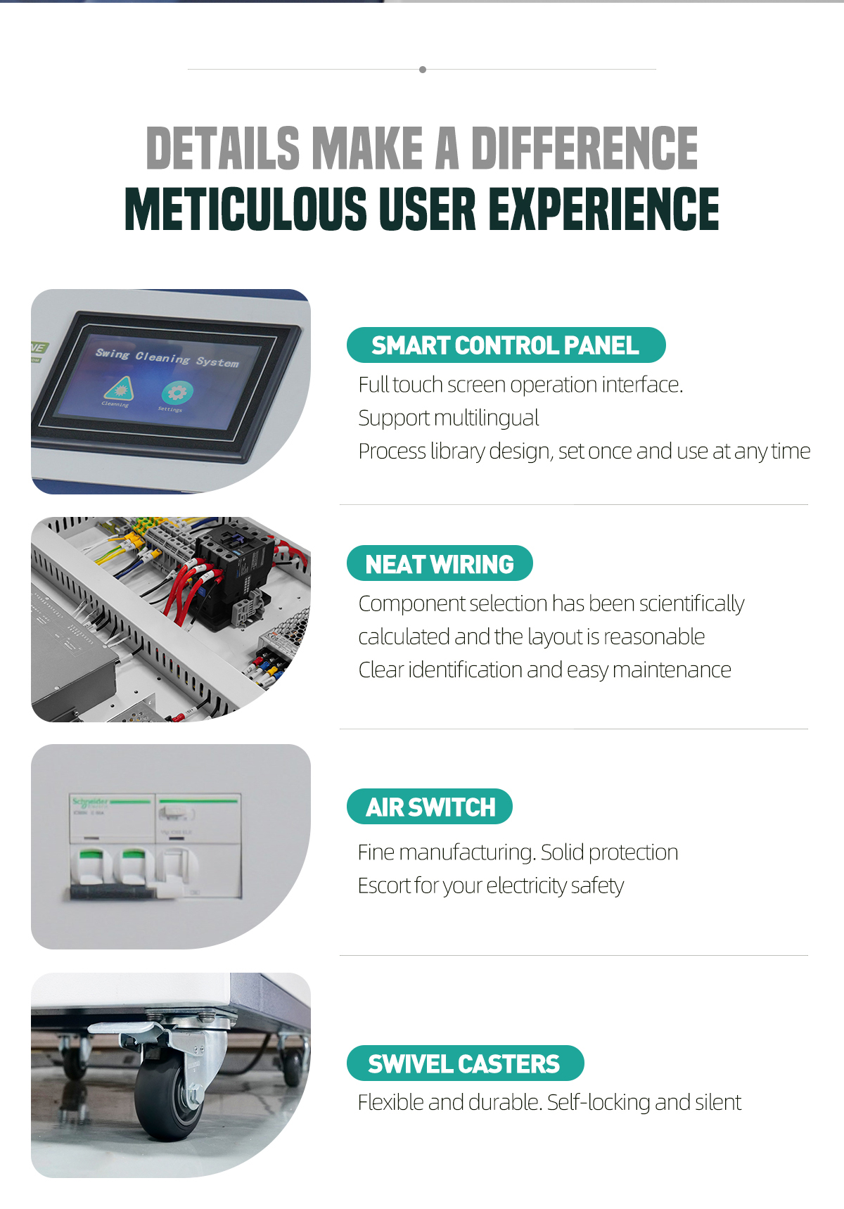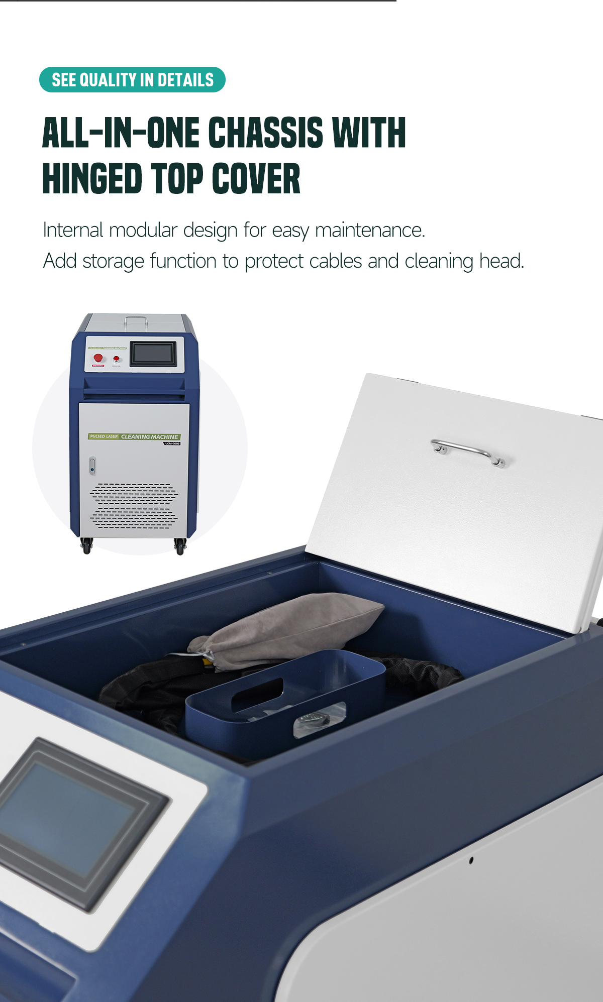 8. All-in-one chassis with hinged top cover. Add storage function to protect cables and cleaning head.