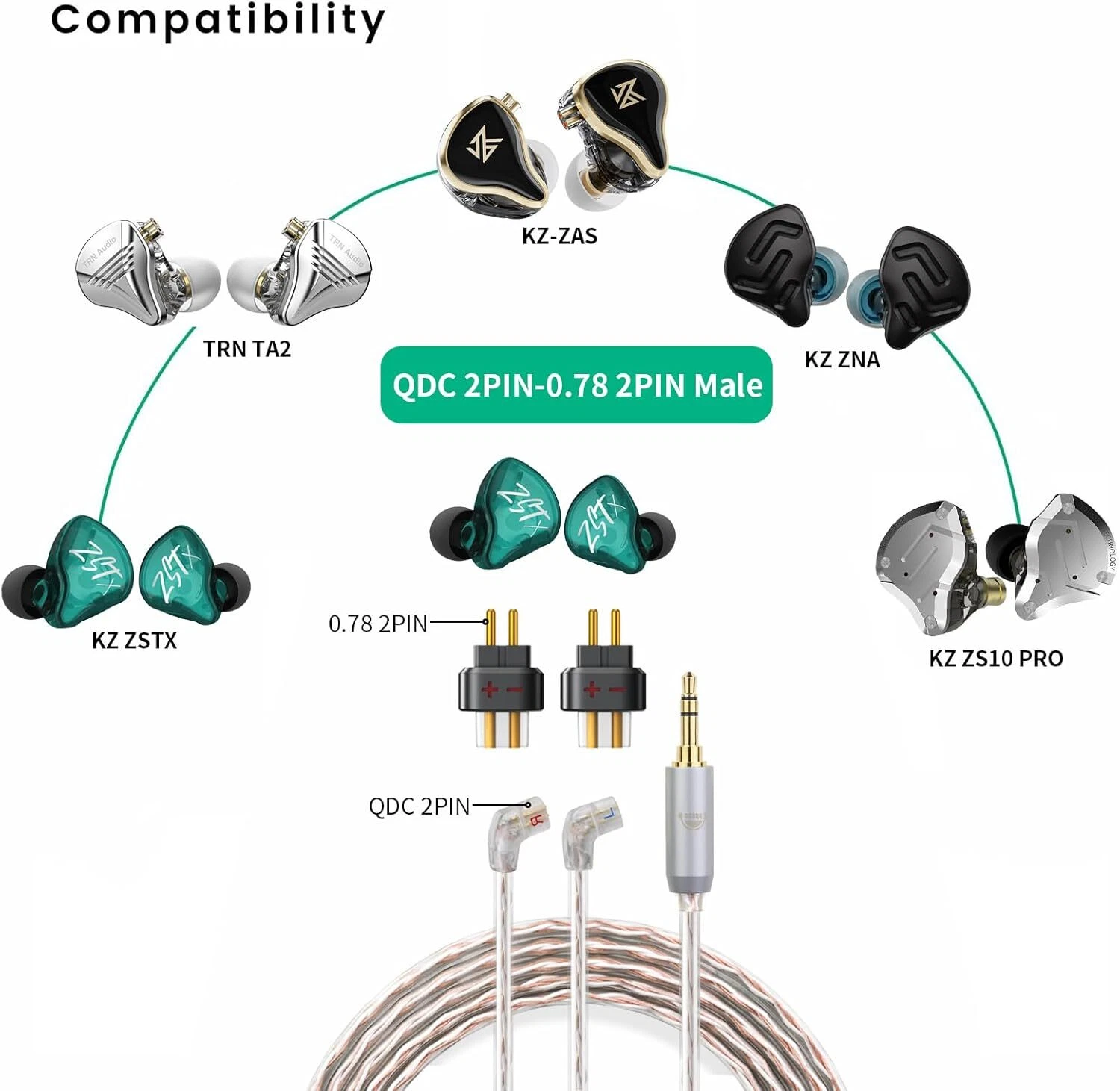 u High Compatibility: Compatible with a variety of 0.78/QDC models of headphones and cables, for SENNHEISER IE200 IE300 IE600 IE900 AKG N5005 N30 N40, for Etymotic ER4SR ER4XR ER3XR ER3SE ER2XR ER2SE LN008099, for KZ BA10 AS10 zS10 ZSR ZST ED12 ES3 ES4 KZZS10 ZS10 PRO ZSN ZSN PRO ZSN PRO X ZST ZSTX KZZSX ZAX ASF ASX EDX AS16 SHUER CONDUCTOR SINGER and more, ensuring a seamless connection with your favourite headphones while bringing you more convenient experience.