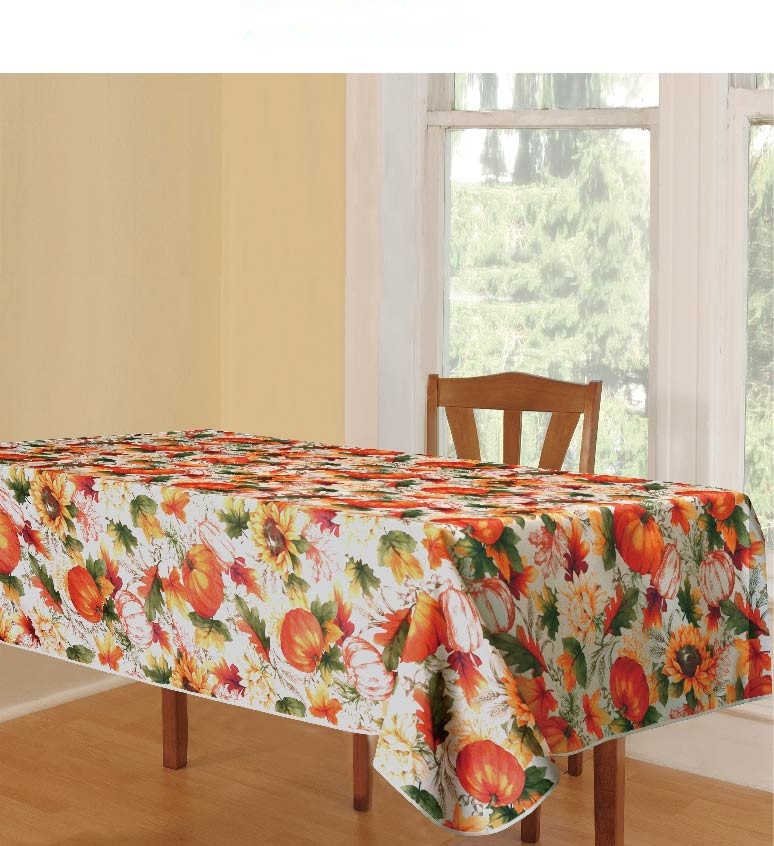 The beautiful and elegant, pumpkin and autumn leaves Tablecloth will enhance your home and dining experience throughout the holiday season, transforming any tabletop into a visual masterpiece, it features a stunning, detailed, printed design. The classic, calming appearance of the tablecloth adds elegance and character to any room and is sure to add flavor, texture, and depth to your living space.