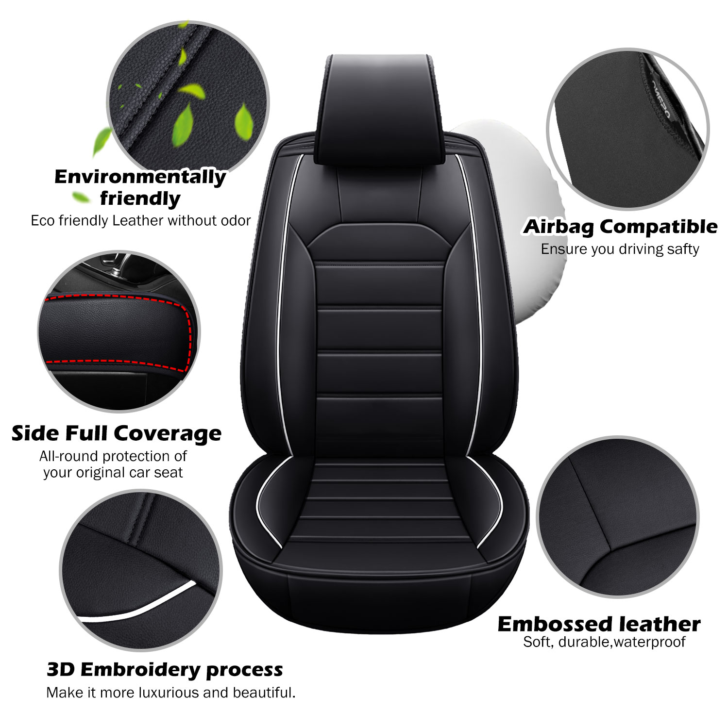 【Premium Leather Seat Cover】 Made of premium PU leather, breathable sponge, breathable non-woven fabric and wear resistant bottom cloth. Scratch-resistant and wear resistant, soft touch and easy to wash with wet cloth.