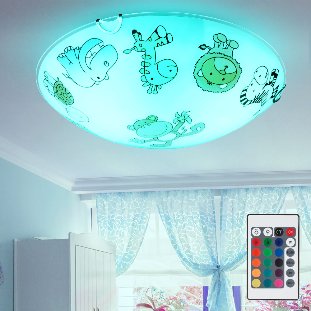 Kinderlampe Deckenleuchte Kinderzimmerlampe dimmbar Fernbedienung Tiere LED RGB