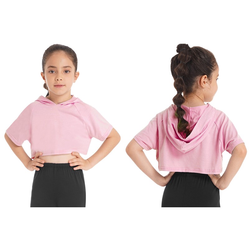 Short sleeve, crop top is designed with hood, pull on closure.
