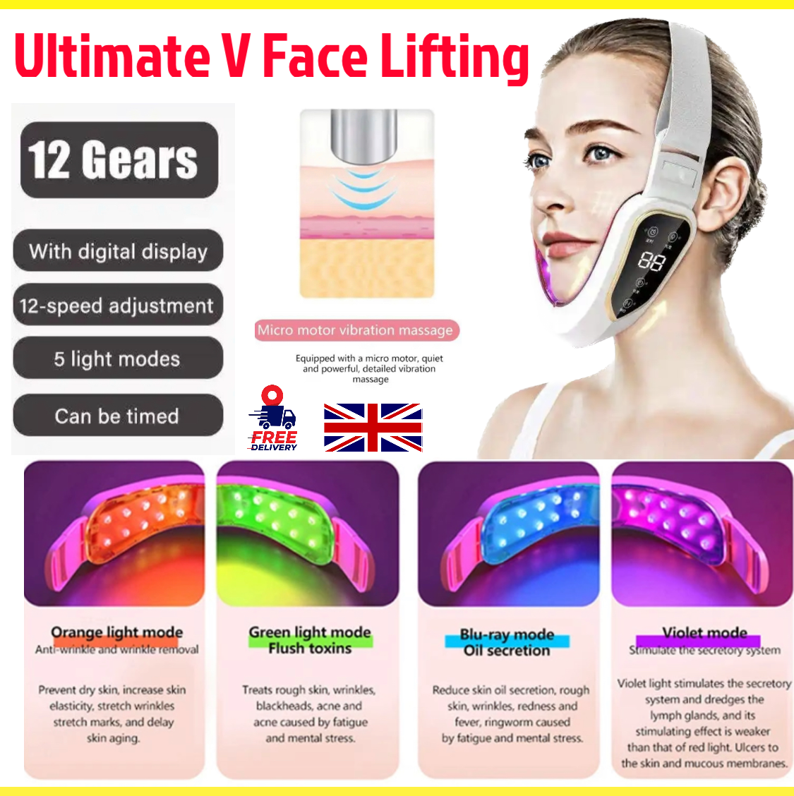 Neck Face Lifting Massager Skin Tighten Device LED and Anti Wrinkle Double Chin
