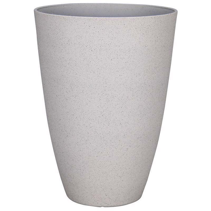 This tall, beautiful classic-style planter is the perfect addition to any home or outdoor space. It features a natural concrete material finish without the heavy weight, made possible by its recycled polyresin construction. The design is created to resemble concrete material, giving it a modern and stylish look. Easy knock-out drainage holes are molded in for both indoor and outdoor use, allowing for proper drainage and increasing the lifespan of your potted plants. It's important to not overwater your plants, and these drainage holes help maintain the correct amount of water usage. Pots with drainage holes are beneficial for increasing and boosting the life of a potted plant. Making it a durable choice for any climate. Additionally, making it an eco-friendly option. We are dedicated to providing high-quality, classic-style planters that complement any home decor or outdoor space.
