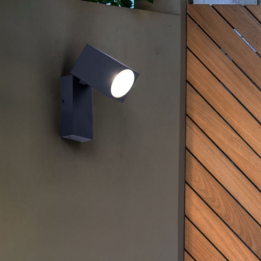 • Leuchtentyp: Wandleuchte • Material: Aluminium • Farbe: Schwarz • Spot beweglich (nach oben und unten) • Schutzart: IP44 • Breite x Höhe x Tiefe in cm: 6,6 x 10 x 9,2