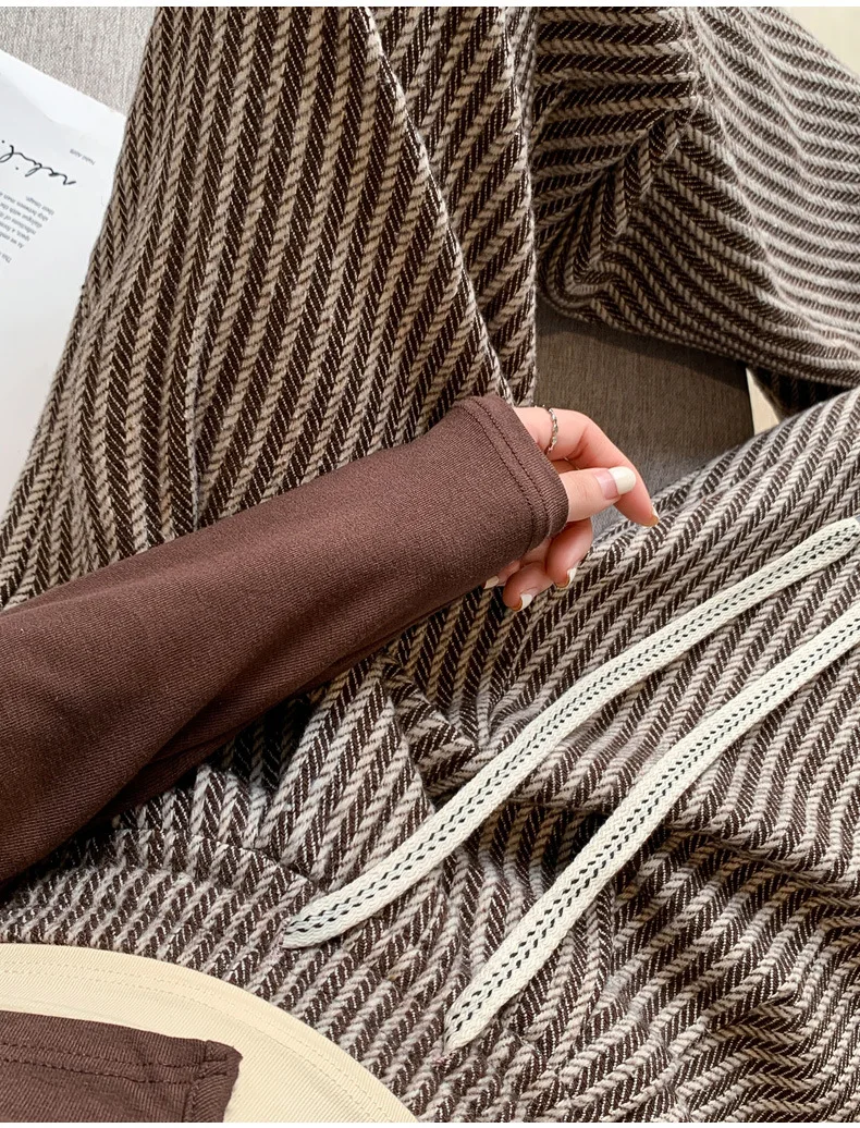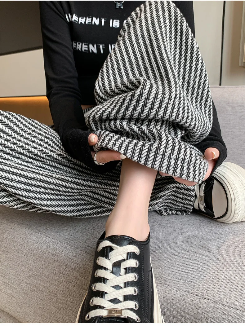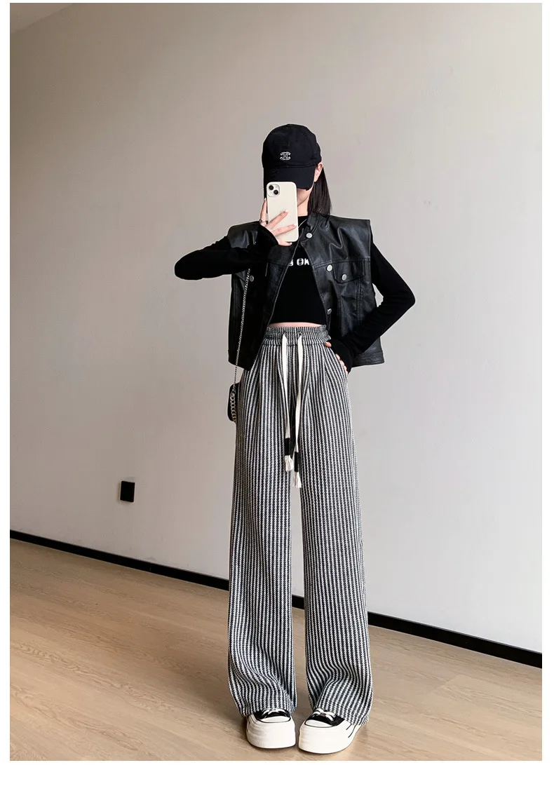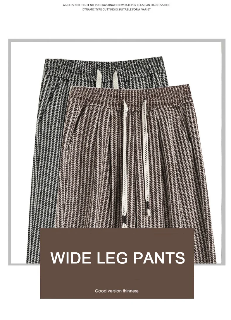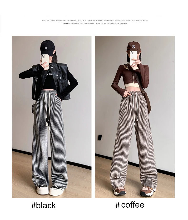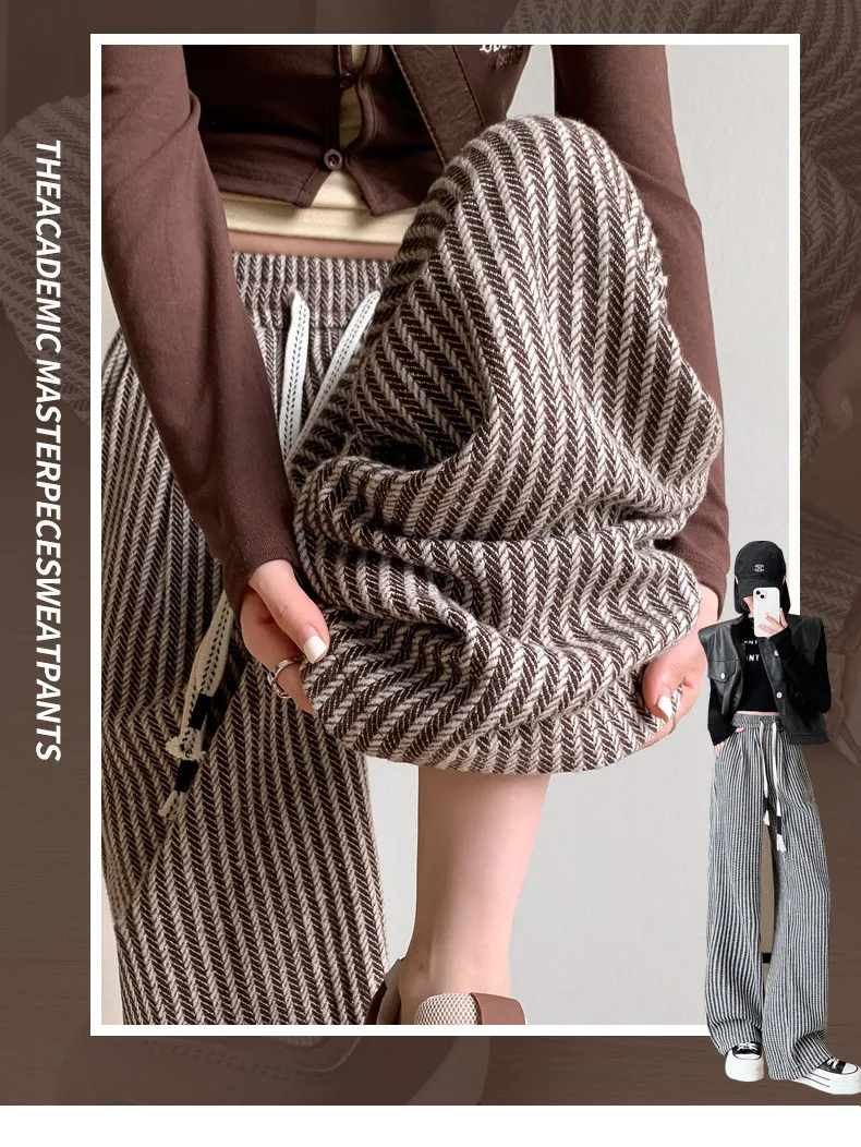 S-XL Striped Straight Casual High Waist Pants Wide Leg Drawstring For Women NEW