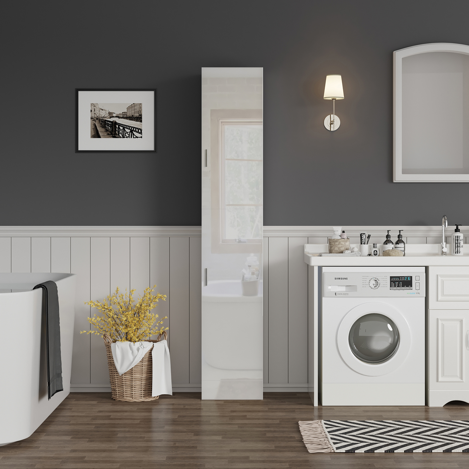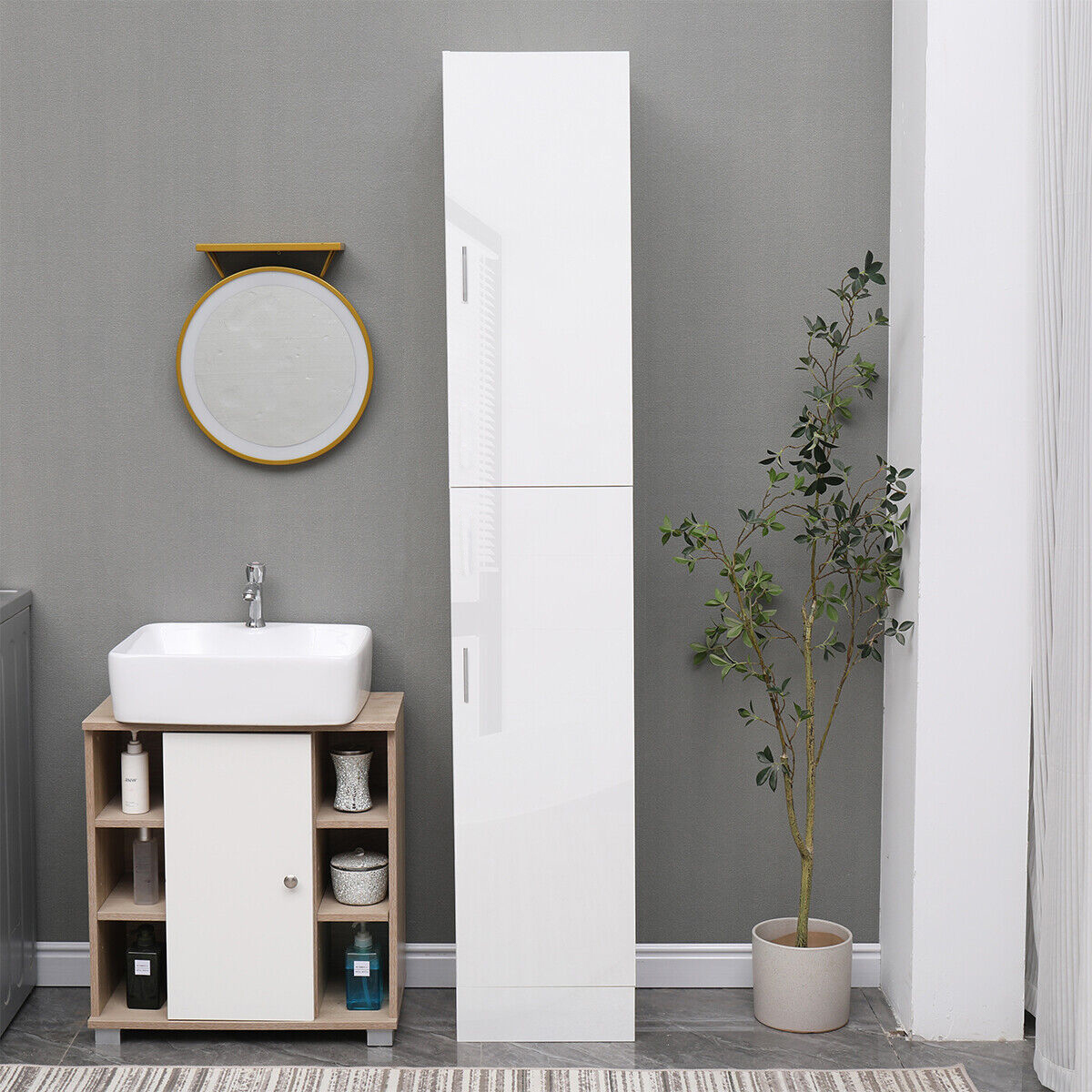 1.Features a timeless standing design, matte body and high gloss font doors,this unit is famously thought as a great choice for bedroom or cloakroom.