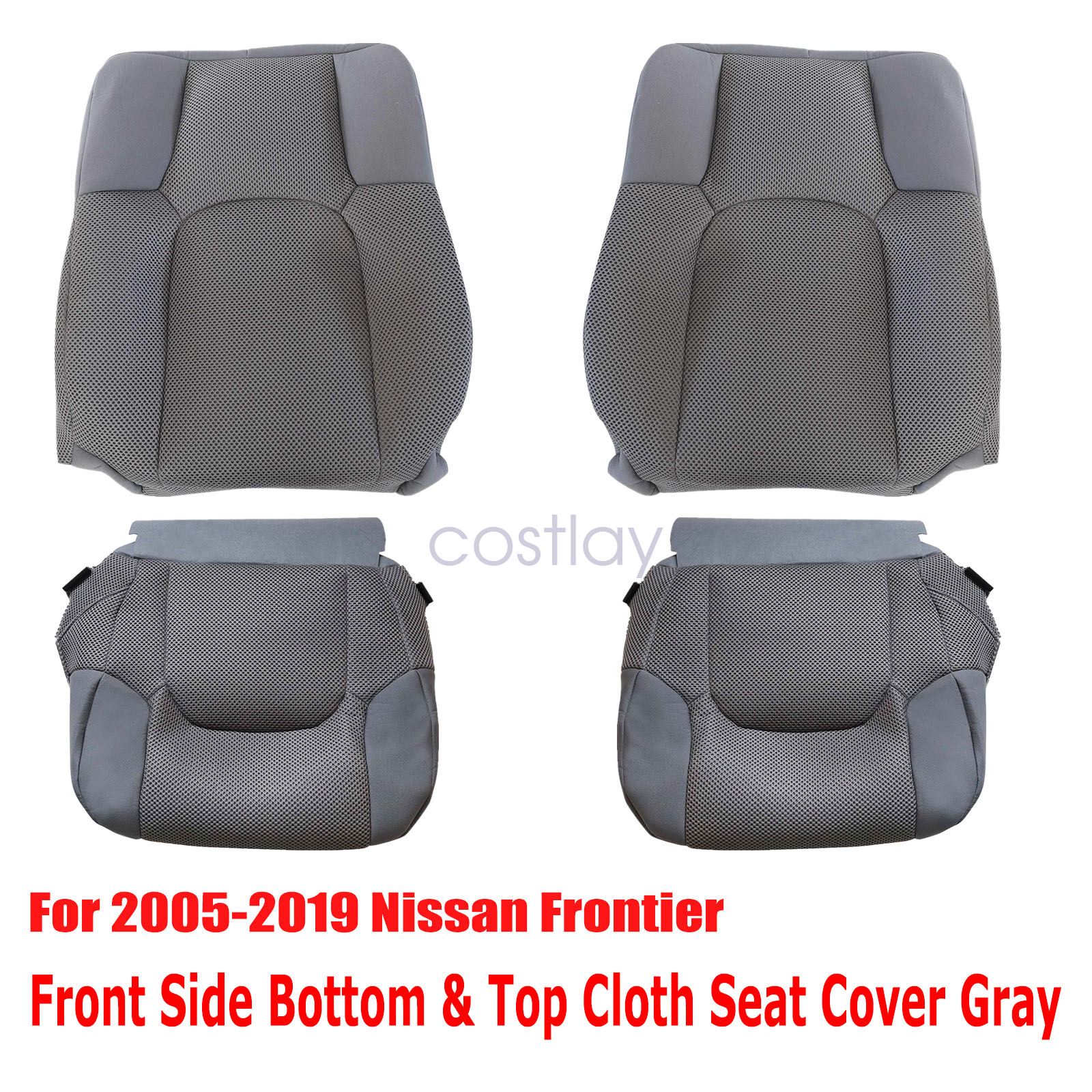For 2005-2019 Nissan Frontier Front Driver & Passenger Side Bottom-Top Lean Back Replacement Cloth Seat Cover Gray