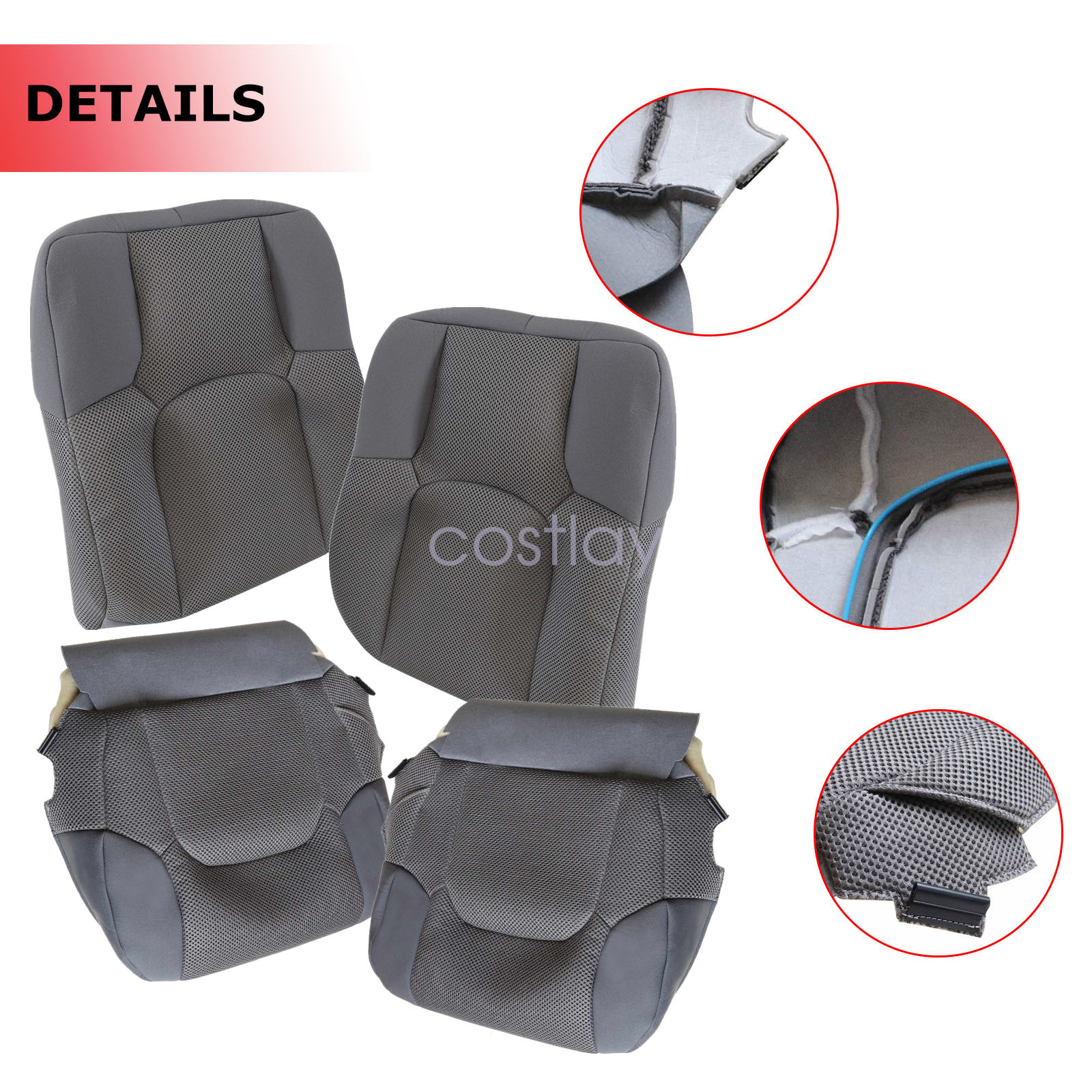 This Driver & Passenger Bottom & Top Replacement seat cover, built to factory specs with Quality Cloth to match the Interior of your vehicle!