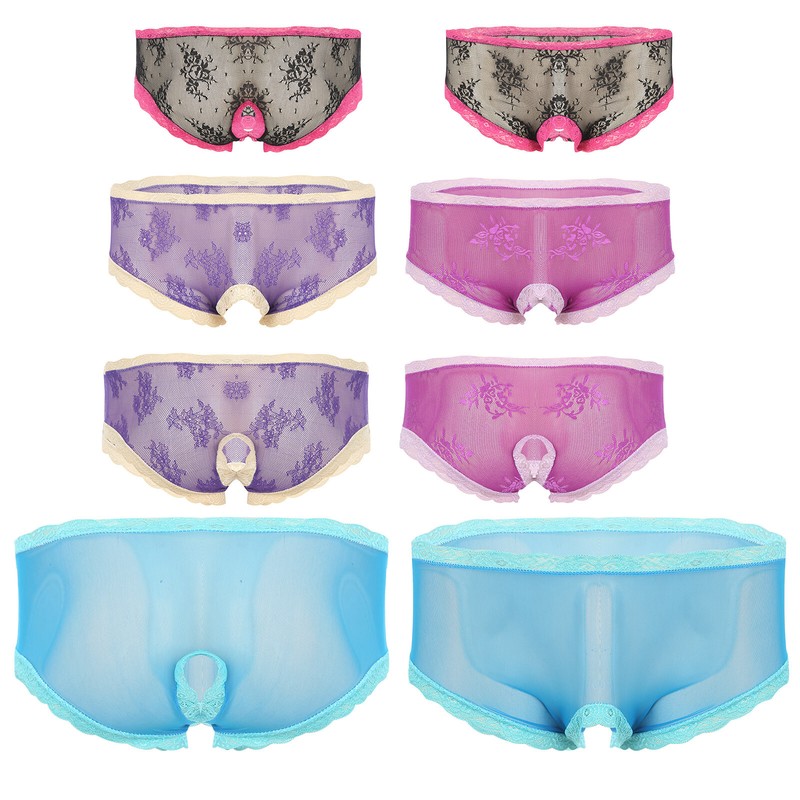 Men Sissy Satin Underwear Thong Lace Patchwork Panties G-string Briefs T-back.