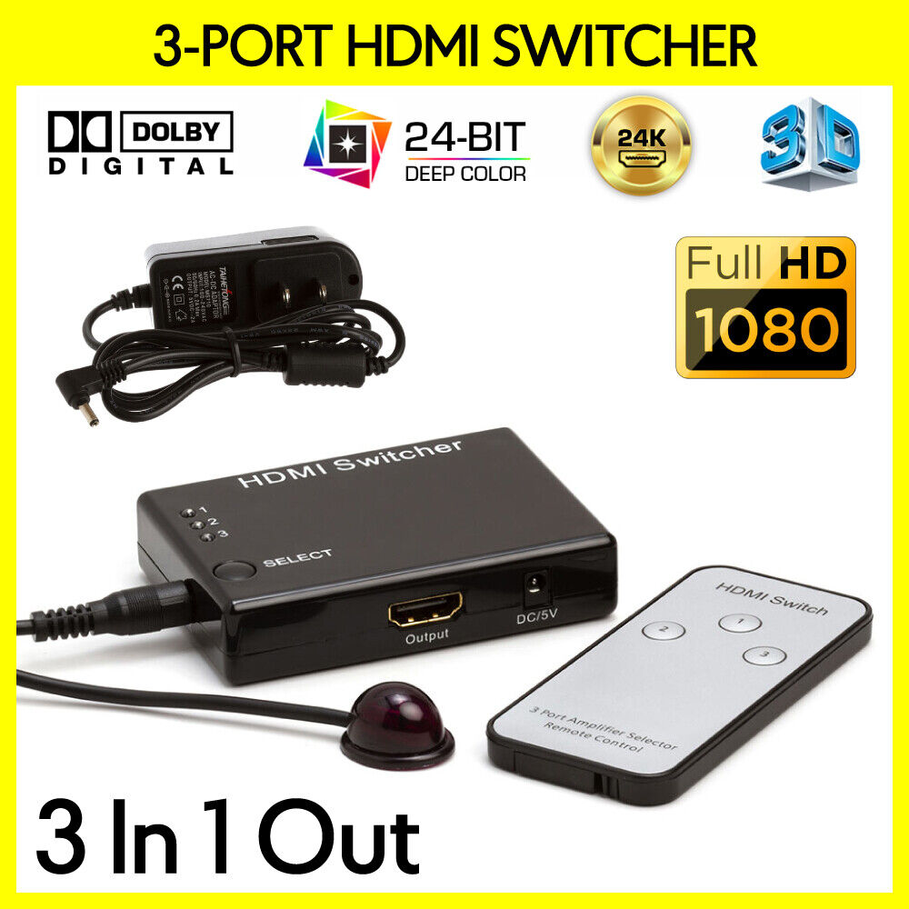 The 3x1 HDMI Switcher routes high definition video (in multiple resolutions up to 1080p) and digital audio from any one of the two sources to display unit. Three inputs accommodate the simultaneous connection of up to two high definition video sources, such as satellite systems and HD DVD players. The output sends the high definition audio/video signals to a high definition display. Switching is done via it self automatically when signal present on the ports.