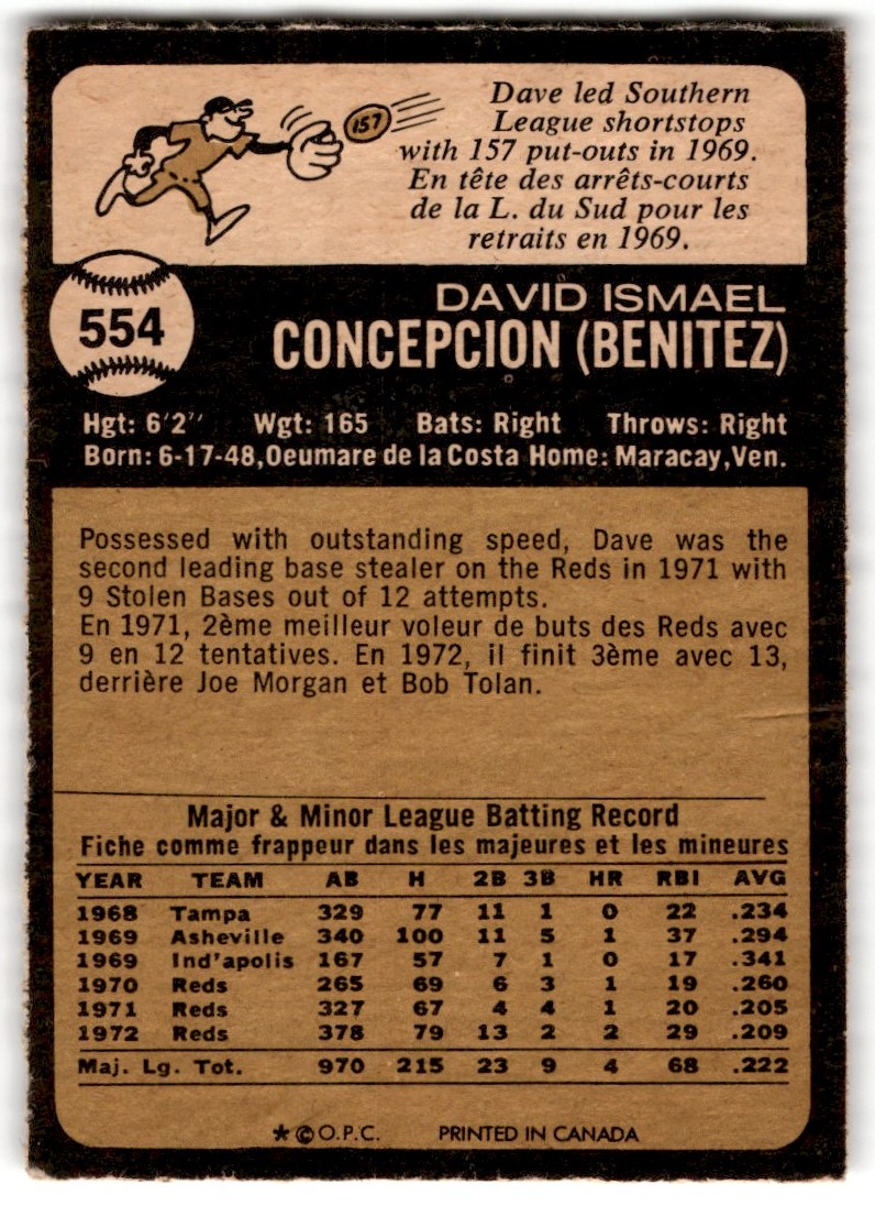 | 1973 O-Pee-Chee Dave Concepcion #554 CREASED Cincinnati Reds |