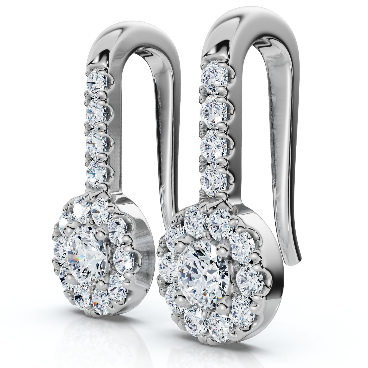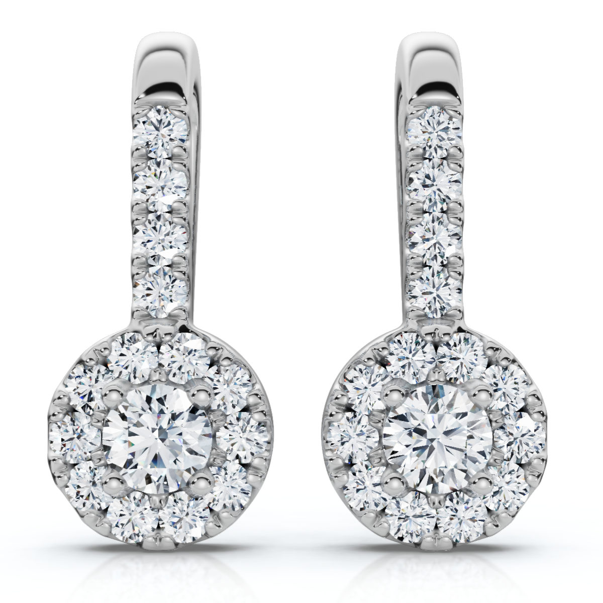 1/4ct Diamond Pave Set Round Drop Style Halo Earrings 14K White Gold New