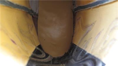 Please note: The insert is what I found inside the boots. If following the form these are a size 10 wide. However, I've taken pictures of the sizes with a ruler for you to determine if these will fit you. There is also a number inside of the boot and you might want to call Tony and see if he can reference that number for the exact size.