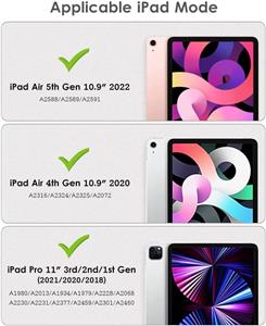 • Compatibility - Designed for Apple iPad Pro 11" 2022&2021&2020&2018 (Model Number: A2377/A2459/A2460/A2228/A2068/A2230/A2231/A1980/A2013/A1934/A1979).iPad Air 4 (Model Number:A2316/A2324/A2325/A2072). Also Fit Air 5 (Model Number:A2588/A2589/A2591). Not compatible with any other iPad model