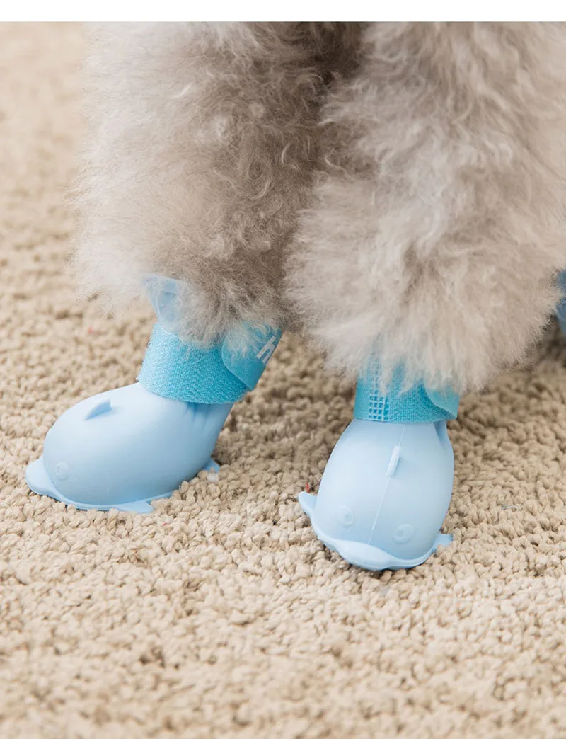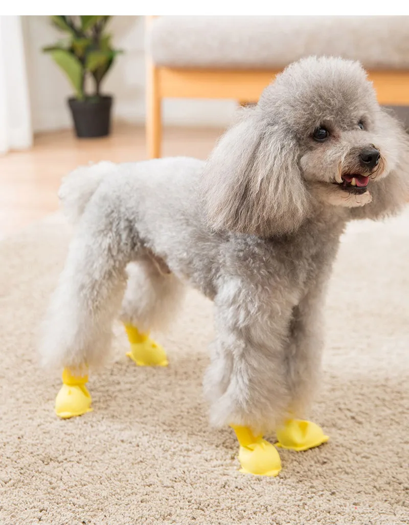 4Pcs/set Pet Dog Rain Shoes Anti Slip Waterproof Rubber Shoes for Small Dogs Cat Portable Booties Rainy Days Appear Pet Supplies