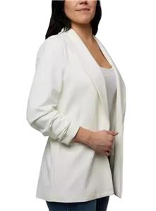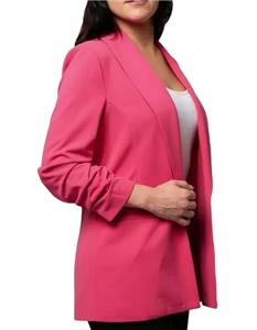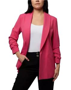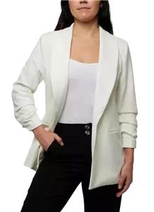 OPEN CREPE BLAZER JACKET WITH RUCHED CRINKLE SLEEVES!