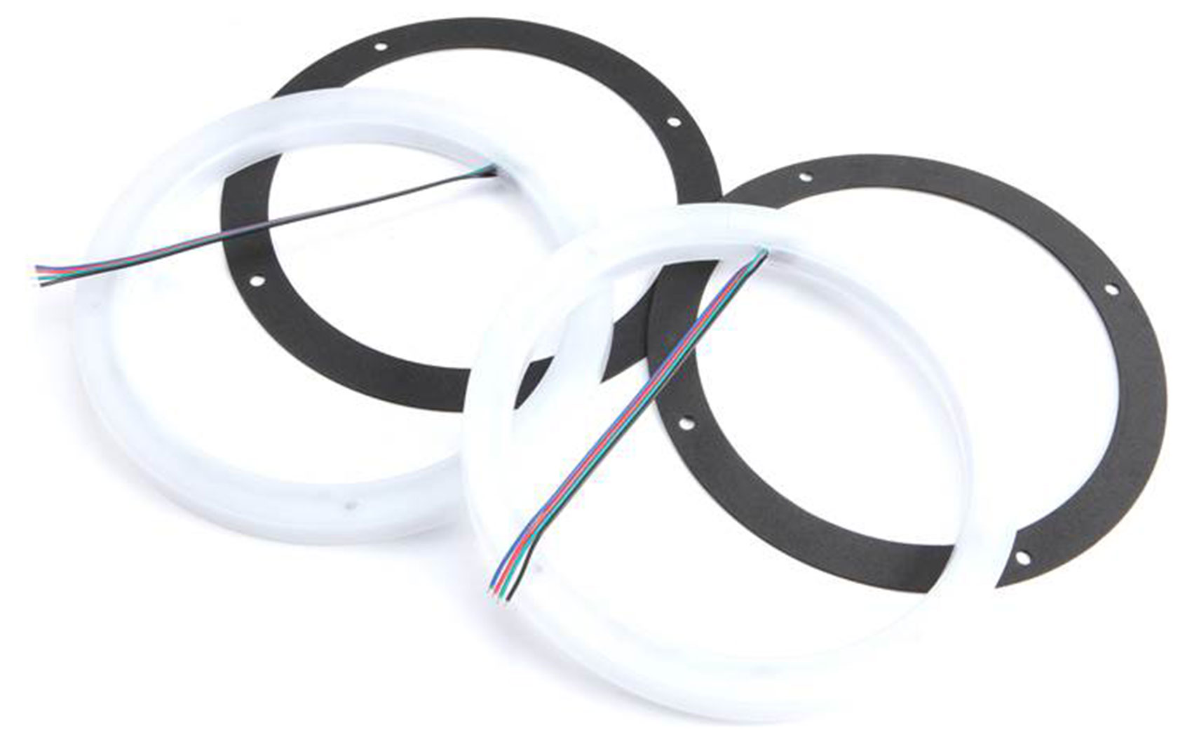 The KLSR LED Speaker Rings are weather-proof polycarbonate rings come equipped with seven standard color options. Expand your color palette to 20 colors and 19 lighting modes with the optional KMLC LED Remote Controller. 6.5", 8", 10" and 12" rings are easily mountable behind your speakers/subs.