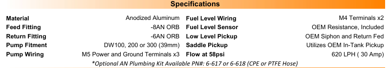 Note: This fuel pump module requires a regulated return style fuel system.