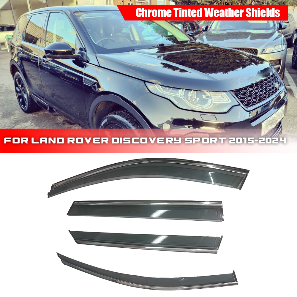 Tape-on Smoke Tinted with Chrome Trim Wind Deflector, Rain Guard, Window Visor, Vent Deflector For Land Rover Discovery Sport 2015-2024