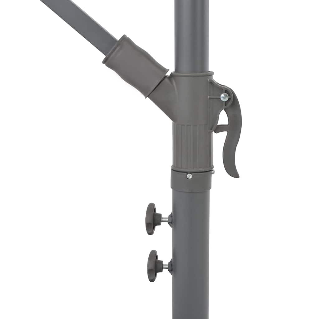 Aus UV-beständigem und farbechtem Polyester gefertigt, bietet dieser pflegeleichte Sonnenschirm optimalen Schutz vor schädlichen Sonnenstrahlen. Er verfügt über einen robusten Kreuzfuß, der für erhöhte Stabilität sorgt. Das exklusive Design ermöglicht das Neigen des Sonnenschirms, um sich in jedem Winkel vor der Sonne zu schützen. Der robuste Schirmmast aus Metall und die 6 starken Schirmrippen verleihen dem Ampelschirm Stabilität und Langlebigkeit. Dieser Gartenschirm lässt sich mittels Kurbelmechanismus leicht öffnen und schließen.