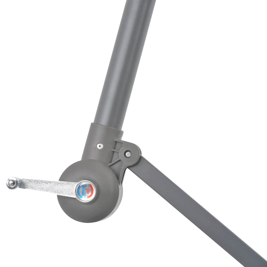 Aus UV-beständigem und lichtechtem Polyester gefertigt, bietet dieser pflegeleichte Sonnenschirm optimalen Schutz vor schädlichen Sonnenstrahlen. Er verfügt über einen stabilen Schirmständer, der für erhöhte Stabilität sorgt. Das exklusive Design ermöglicht das Neigen des Sonnenschirms, um sich vor der Sonne am Horizont zu schützen. Der robuste Schirmmast aus Metall und die 6 starken Schirmrippen verleihen dem Ampelschirm Stabilität und Langlebigkeit. Der Gartenschirm lässt sich mittels Kurbel einfach öffnen und schließen. Der Artikel lässt sich leicht zusammenbauen.