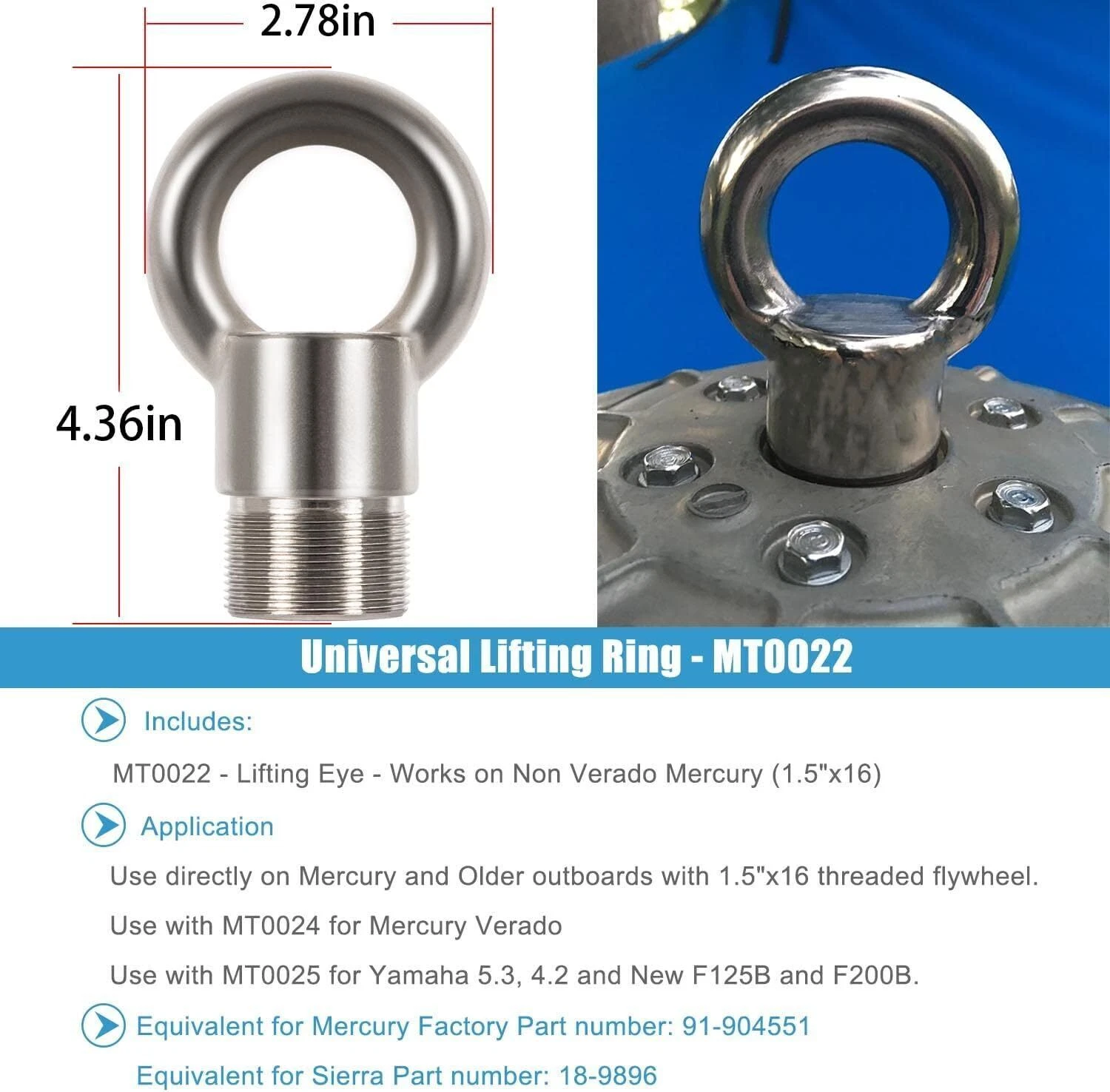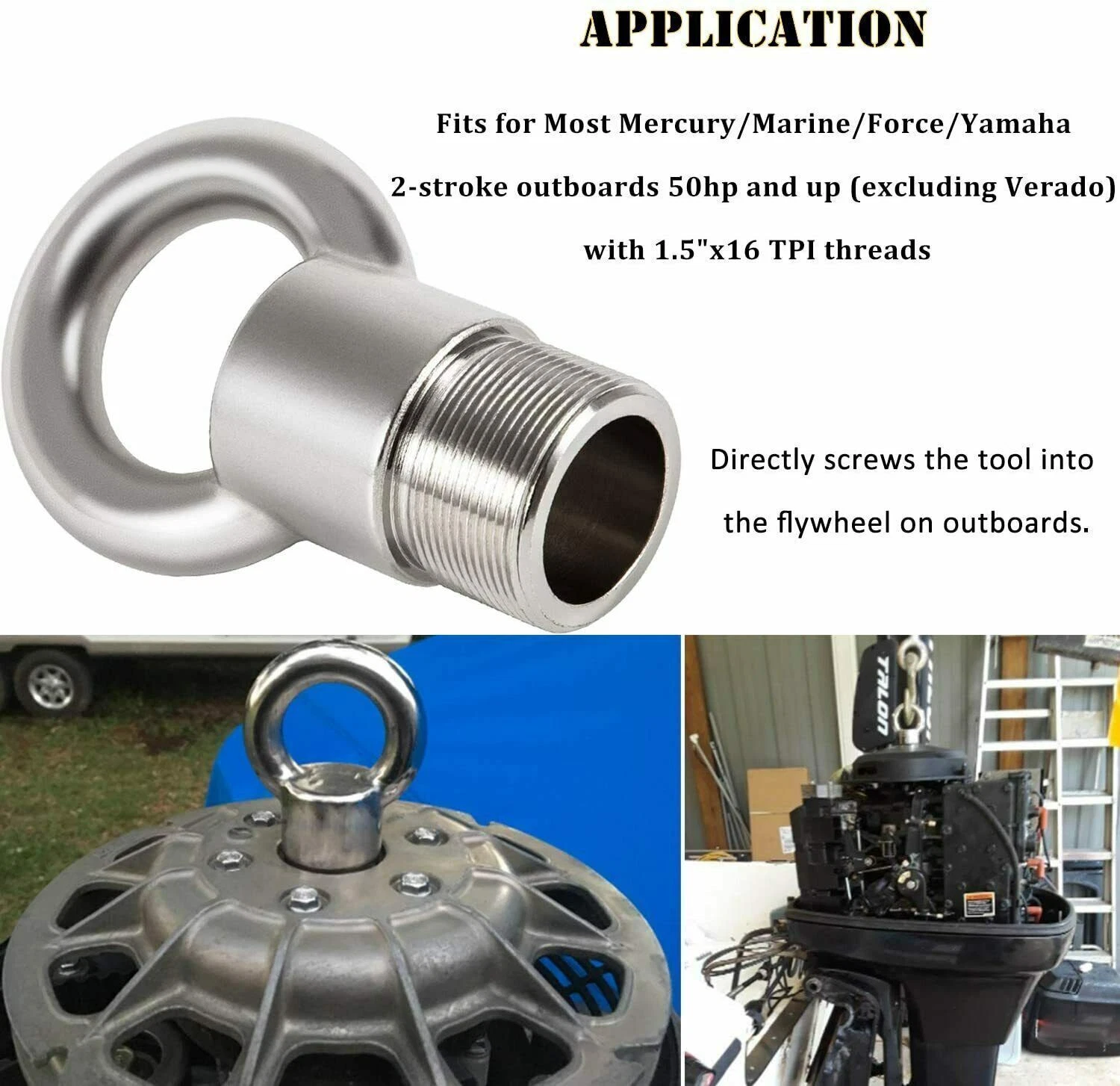 For Yamaha 5.3 V8, 4.2 V6, F200B, F115B, Mercury and older outboards with 1.5"x16 threaded flywheels.